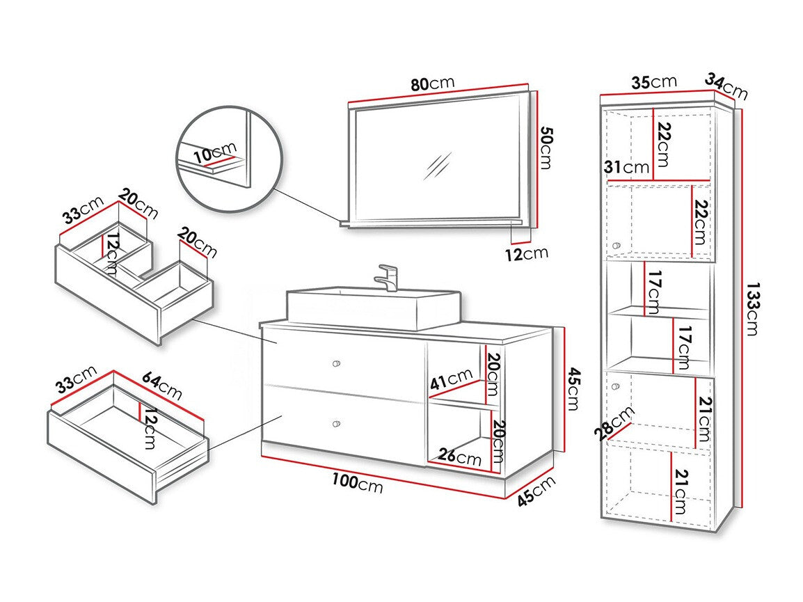 Függesztett szekrény méretei133 x 35 x 45 cm
