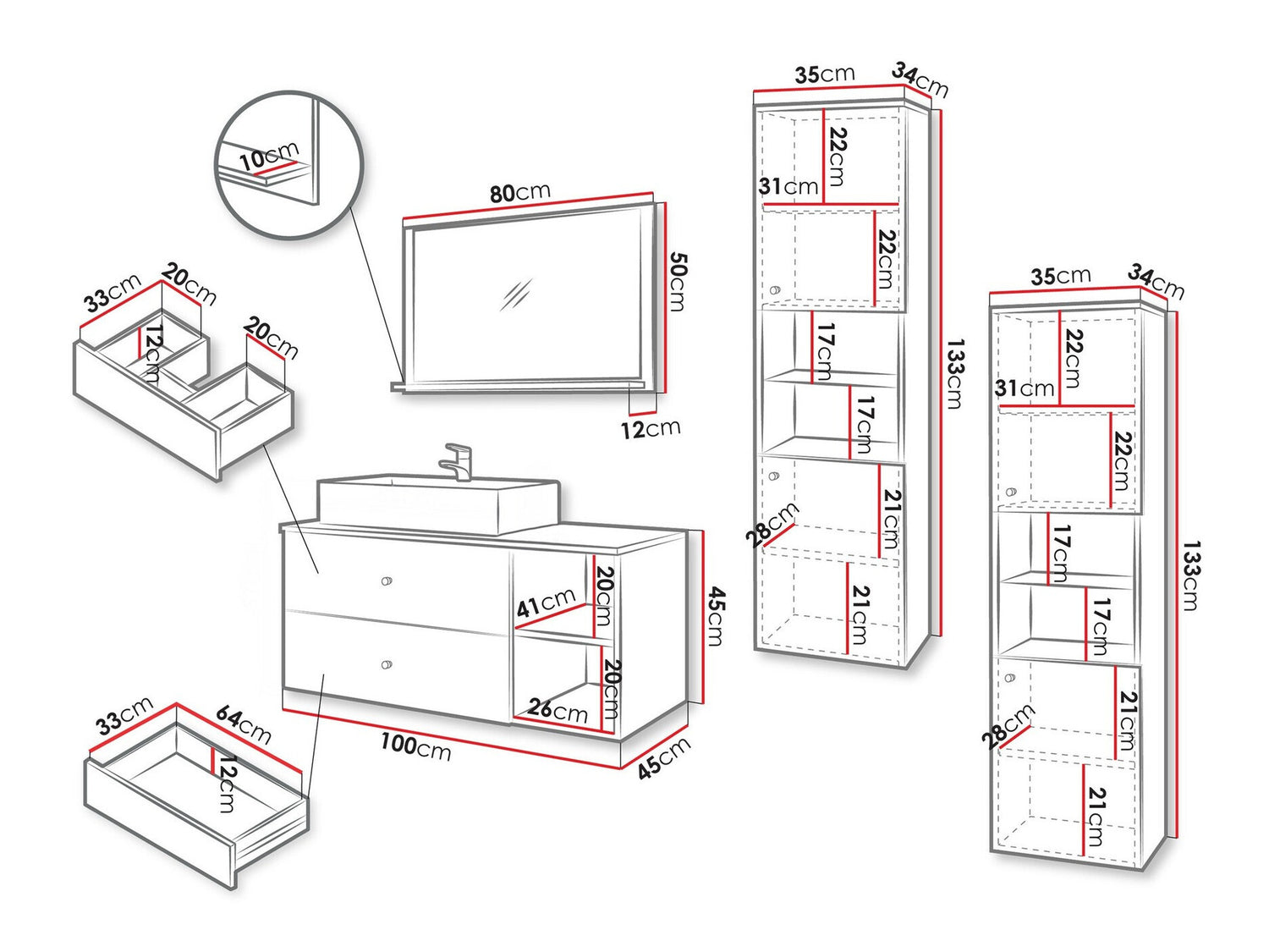 Szekrény méretei133 x 35 x 45 cm