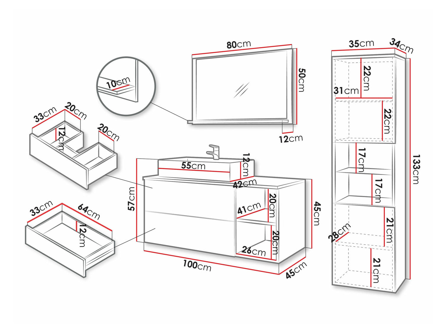 Fürdőszoba garnitúra Meble łazienkowe KERTOS RYFLE II, Szín: Fehér, Mosdókagyló: Igen