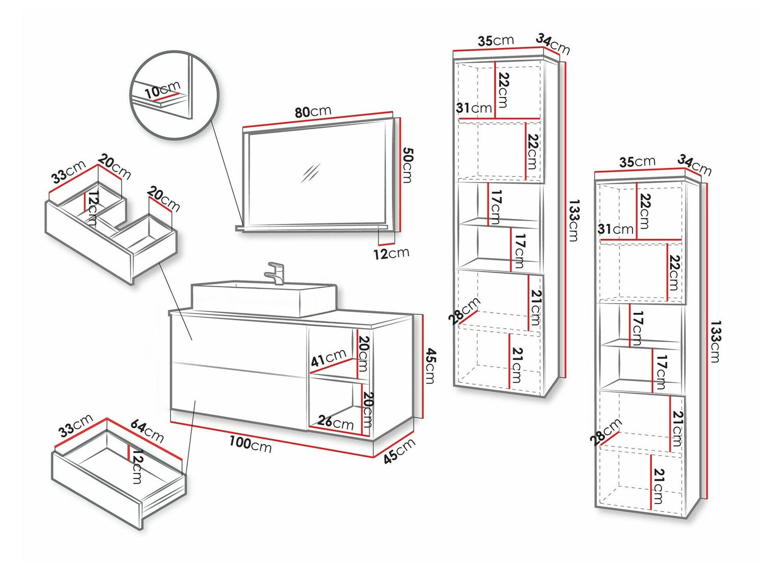 Fürdőszoba garnitúra Meble łazienkowe KERTOS RYFLE III, Szín: Tölgy, Mosdókagyló: Nem