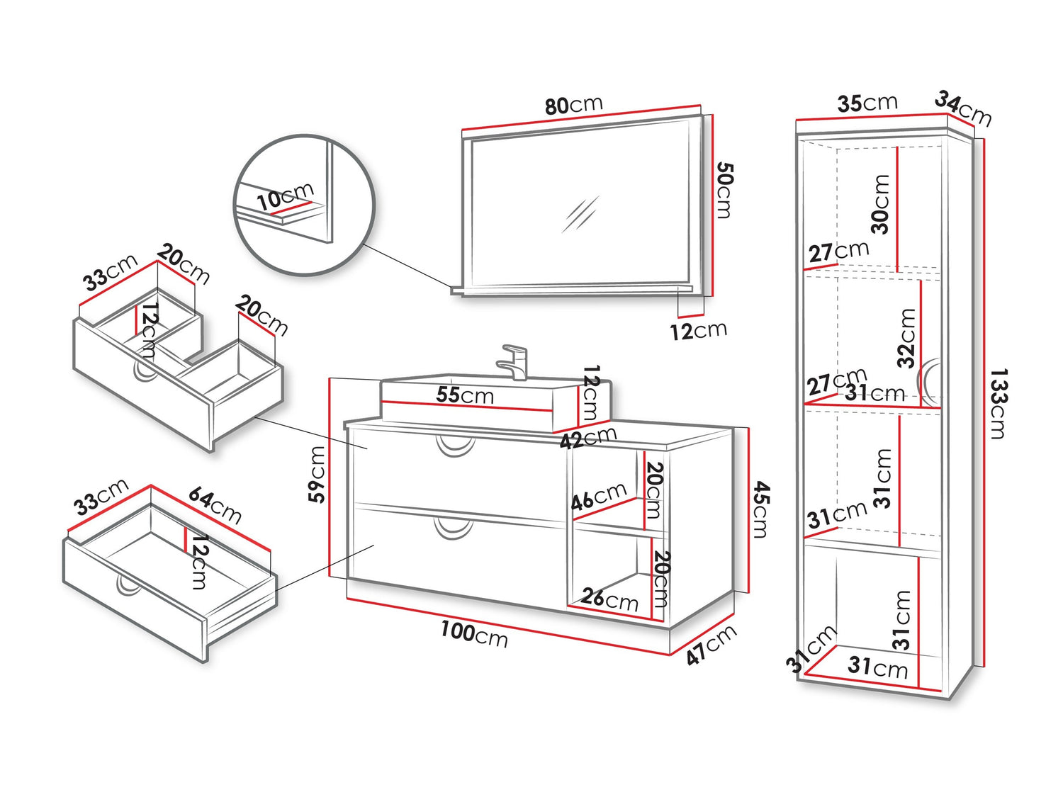 Fürdőszoba garnitúra Meble łazienkowe ŁAZIENKA 14, Szín: Fekete, Mosdókagyló: Igen