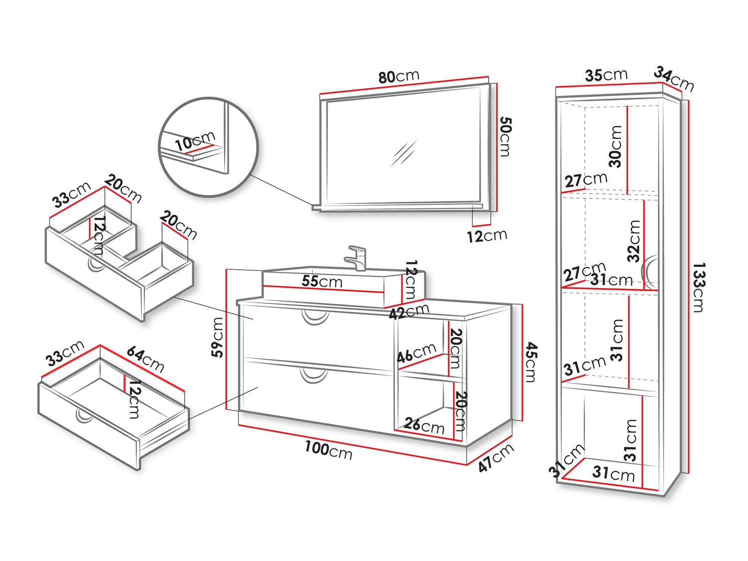 Fürdőszoba garnitúra Meble łazienkowe ŁAZIENKA 14, Szín: Tölgy, Mosdókagyló: Nem