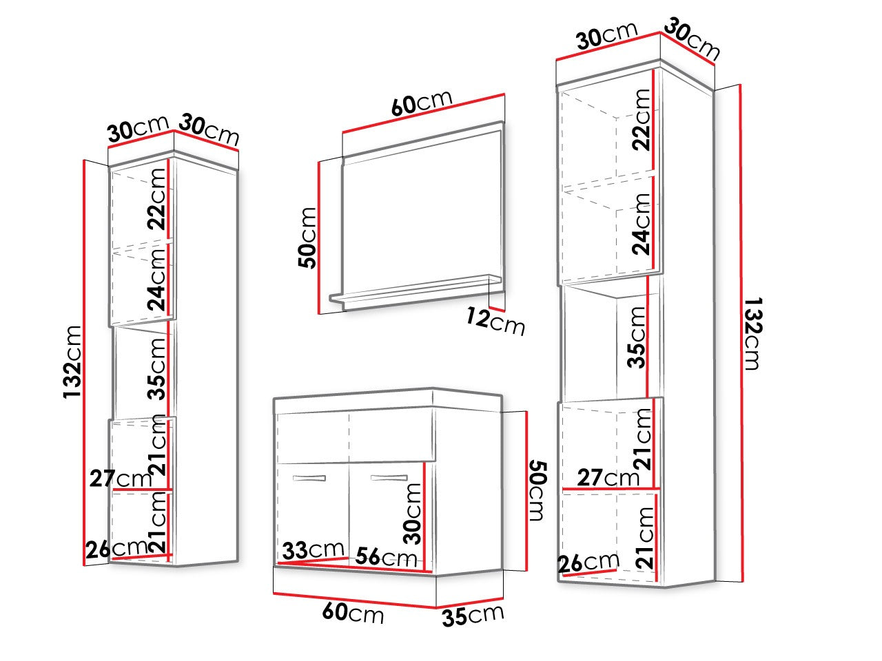 Függesztett szekrény méretei132 x 30 x 30 cm