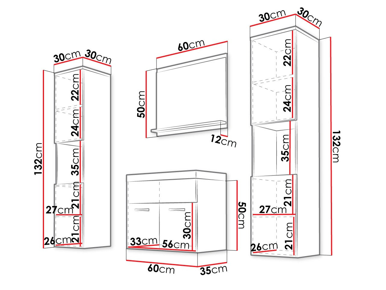 Függesztett szekrény méretei132 x 30 x 30 cm