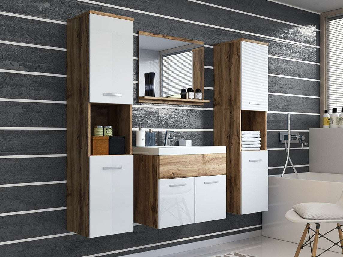 Fürdőszoba garnitúra Montreal XL (Floryna XL), Szín: Wotan tölgy + Fényes fehér