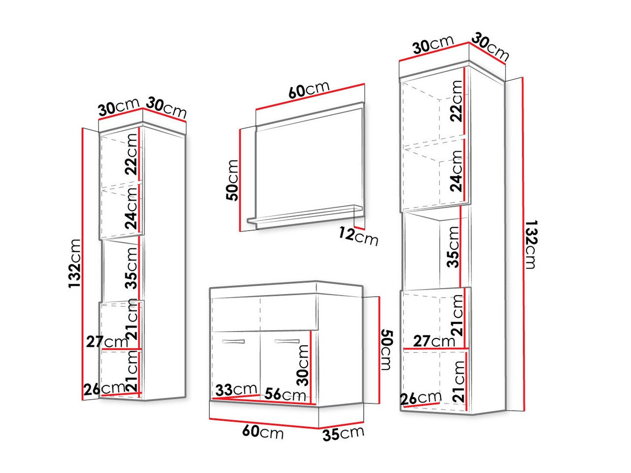 Függesztett szekrény méretei132 x 30 x 30 cm