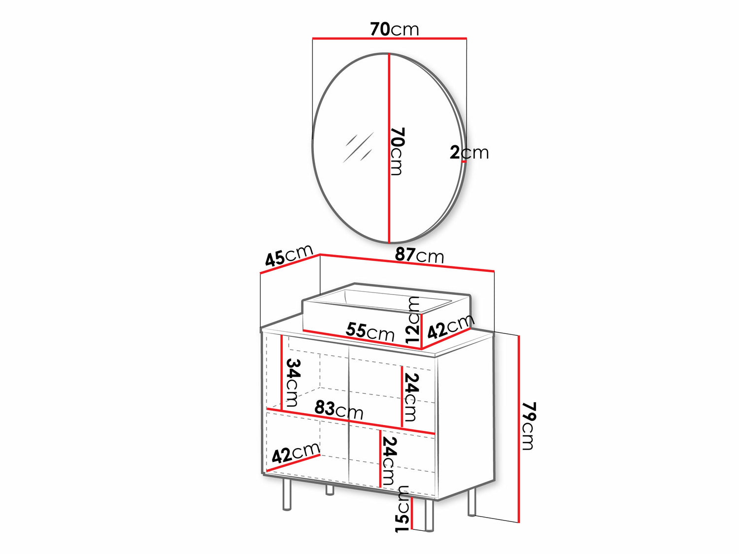 Mosdószekrény méretei79 x 87 x 45 cm