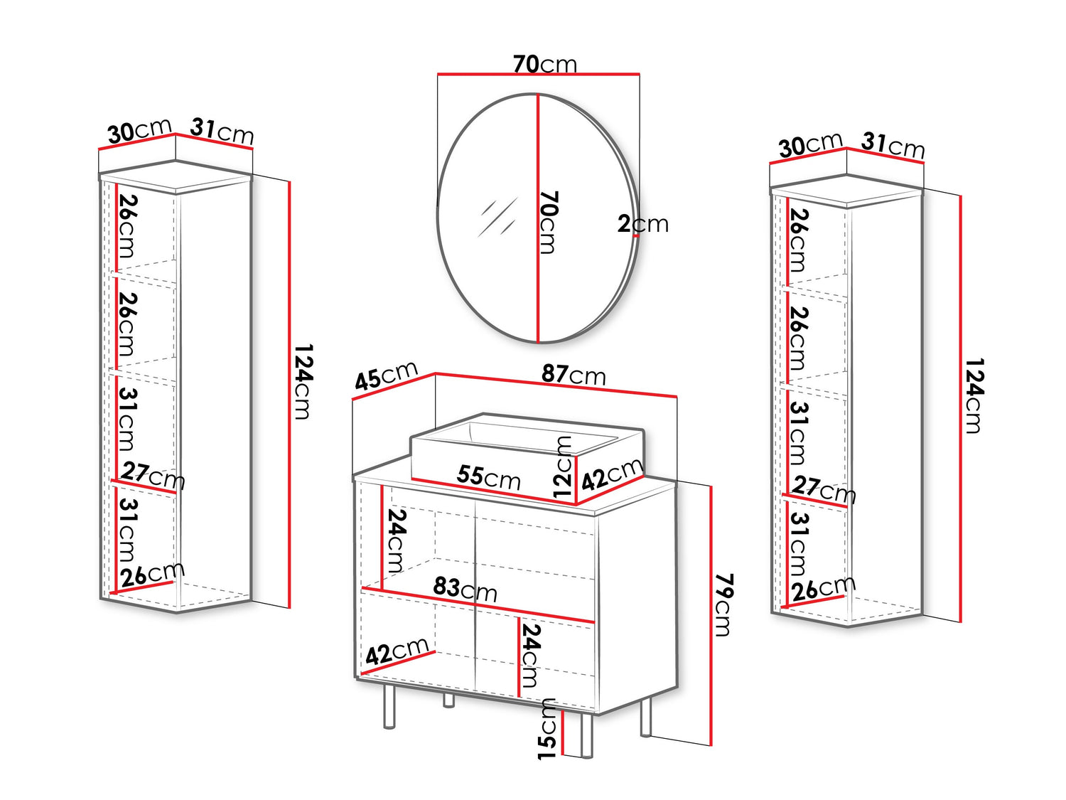 Mosdószekrény méretei79 x 87 x 45 cm