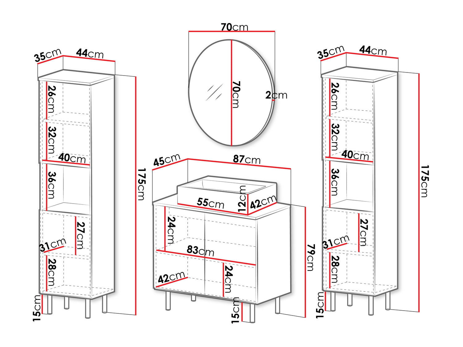 Mosdószekrény méretei79 x 87 x 45 cm