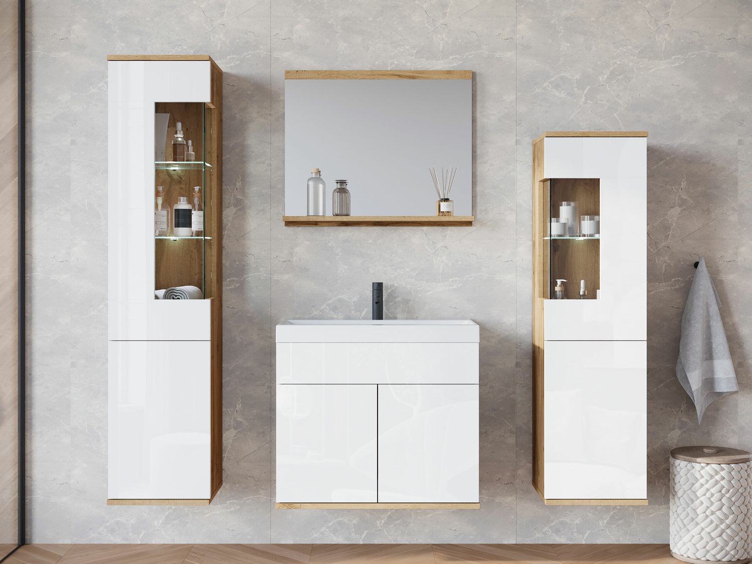 Fürdőszobai garnitúra NAIR, Szín: Wotan tölgy + Fényes fehér, -világítás: Igen