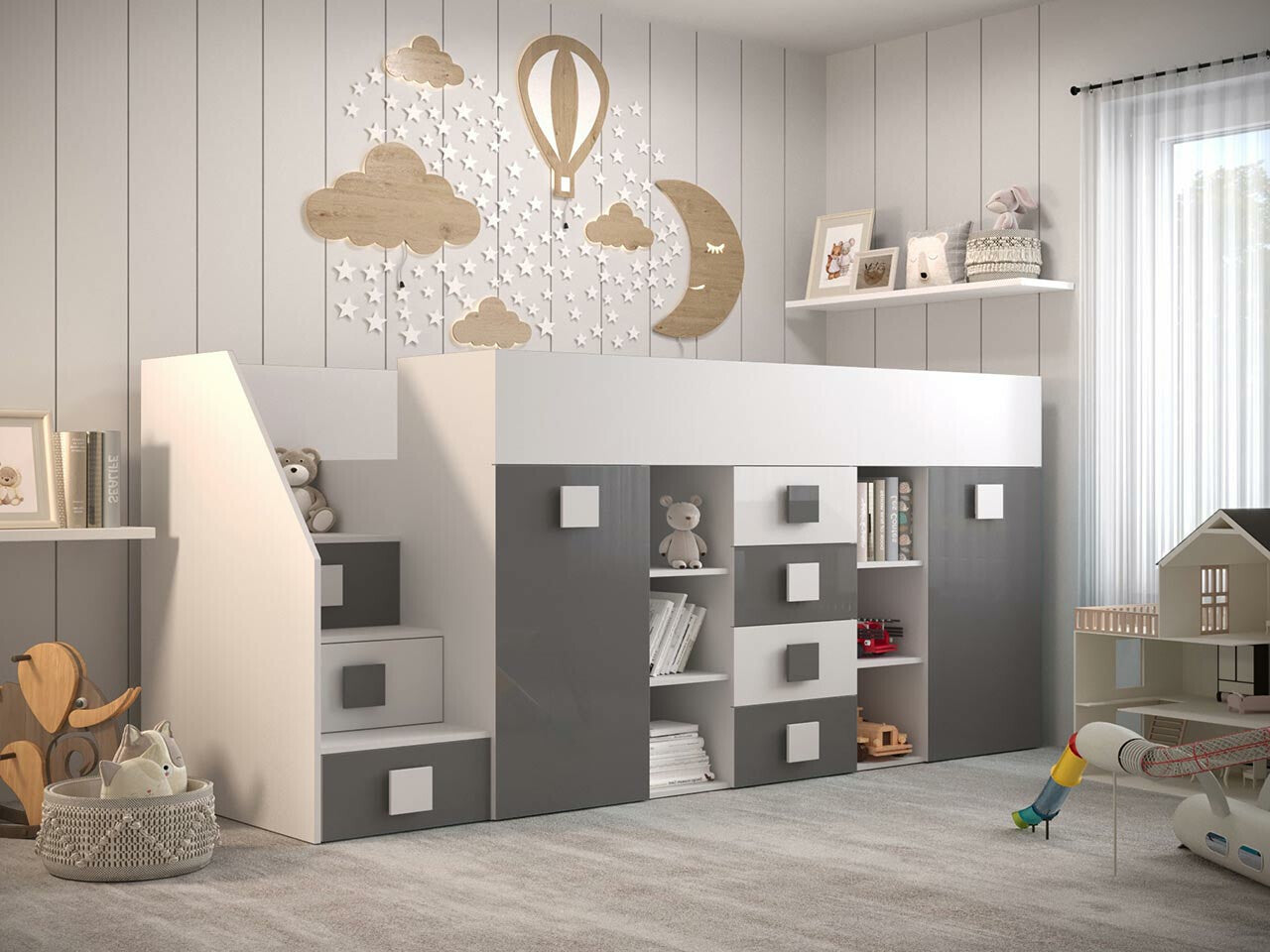 Galériaágy TOLEDO 3, Szín: Fehér + Fényes szürke + Fényes fehér, Változatok: Balos