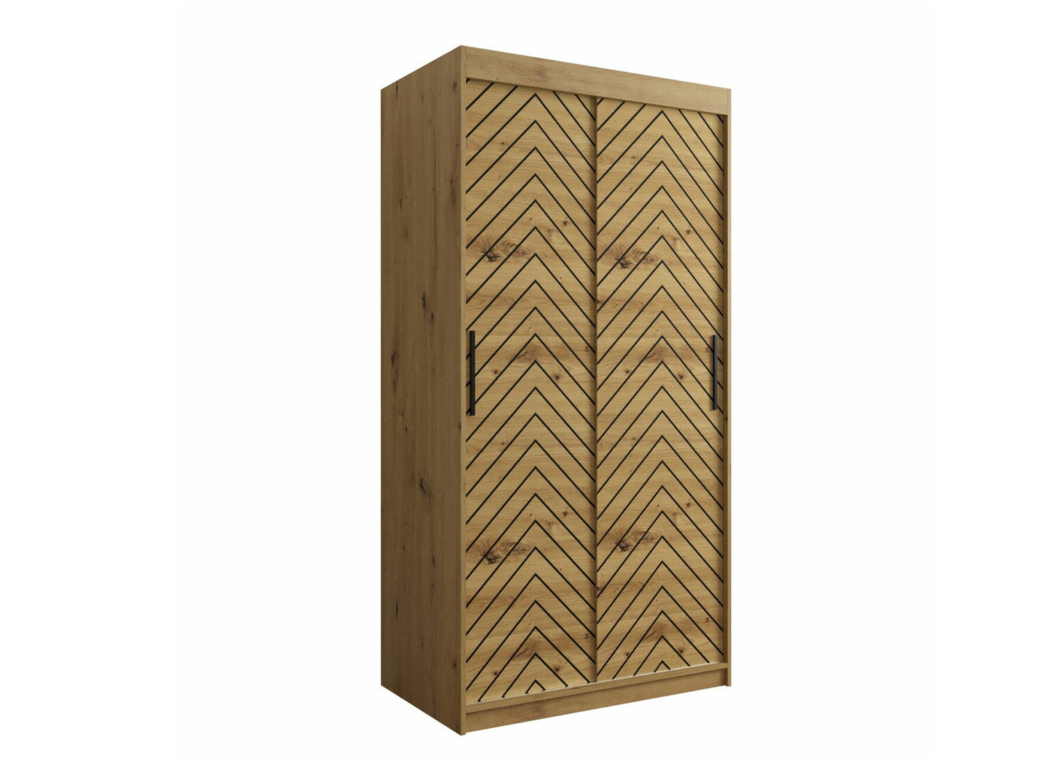 Gardróbszekrény 100 Jodełka 1 (Ratintu), Szín: Artisan tölgy + Fekete, Fiókok: Igen