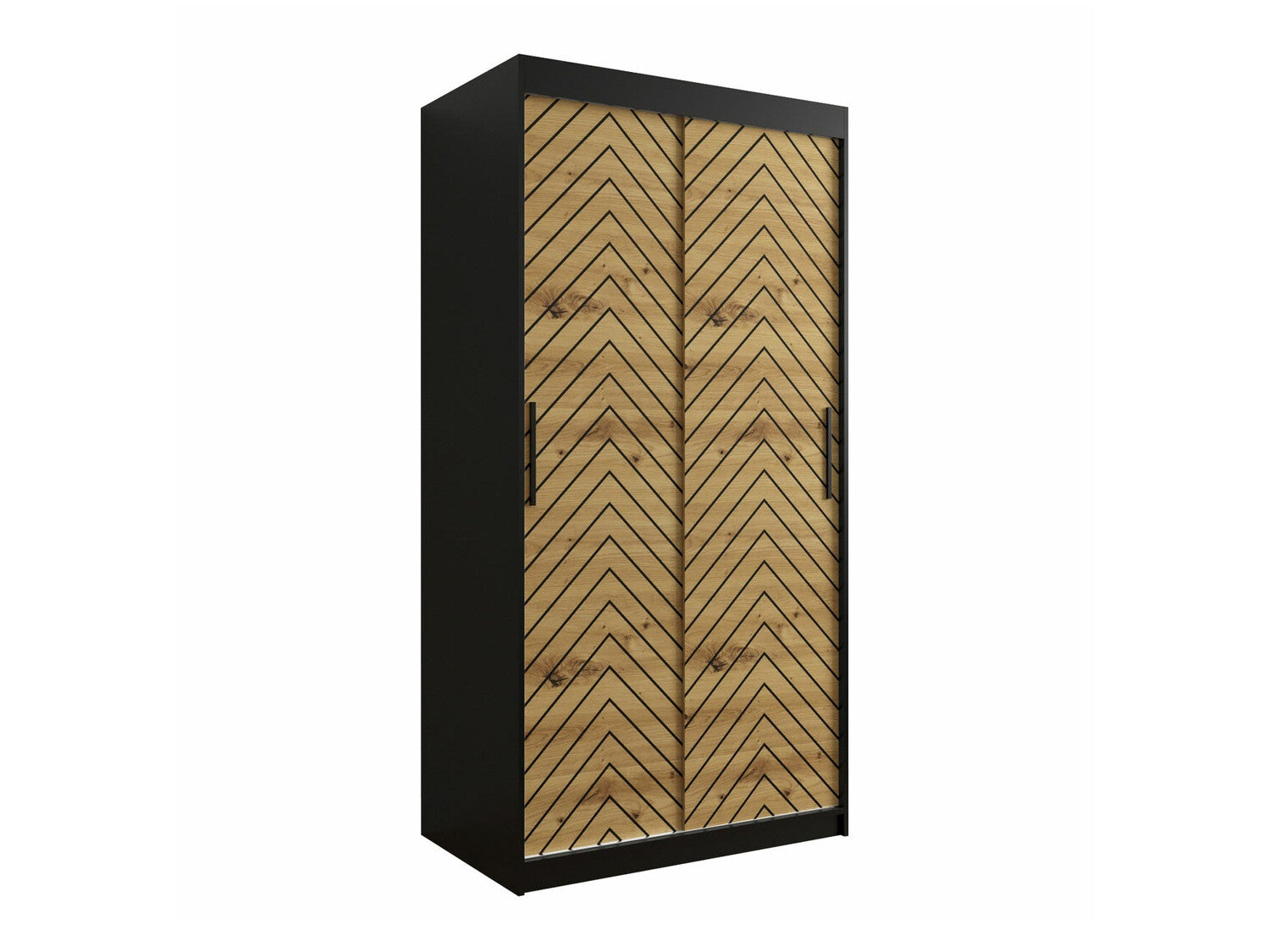 Gardróbszekrény 100 Jodełka 1 (Ratintu), Szín: Fekete + Artisan tölgy, Fiókok: Igen