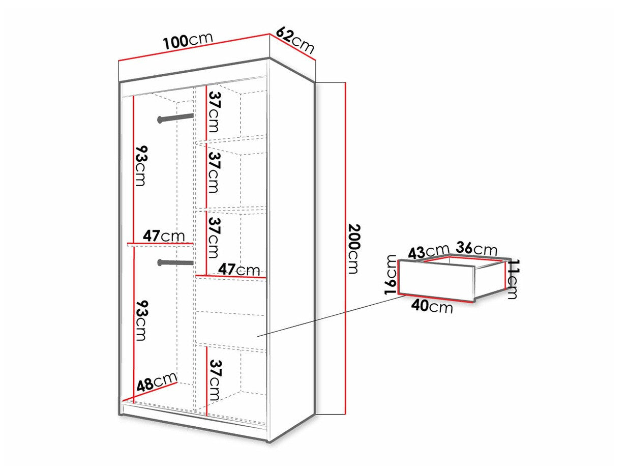 Gardróbszekrény 100 Jodełka 2 (Ratintu), Szín: Artisan tölgy + Fekete, Fiókok: Igen