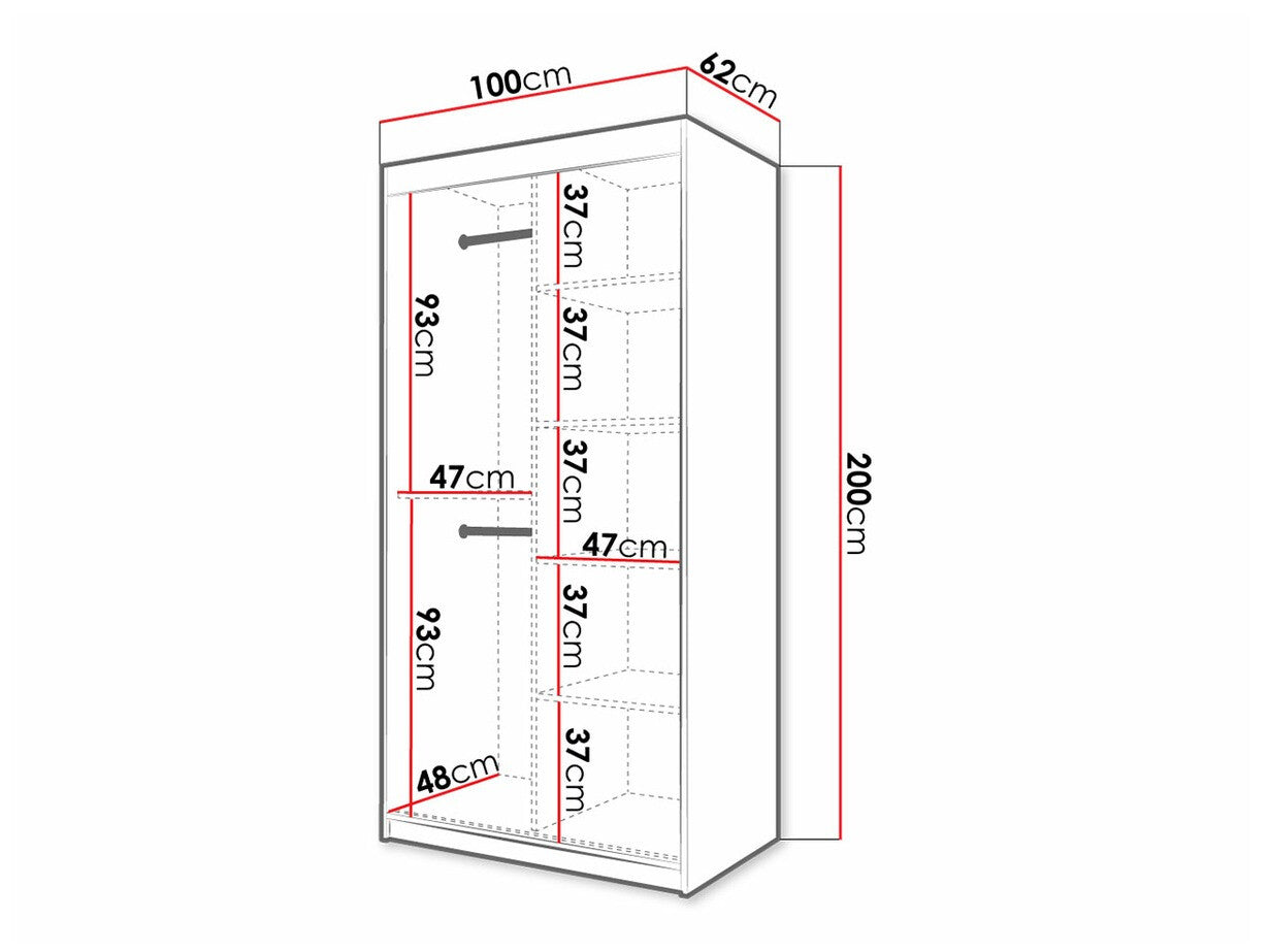 Gardróbszekrény 100 Jodełka 2 (Ratintu), Szín: Fekete + Artisan tölgy, Fiókok: Nem