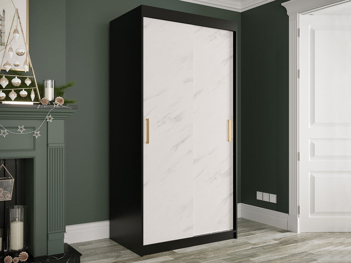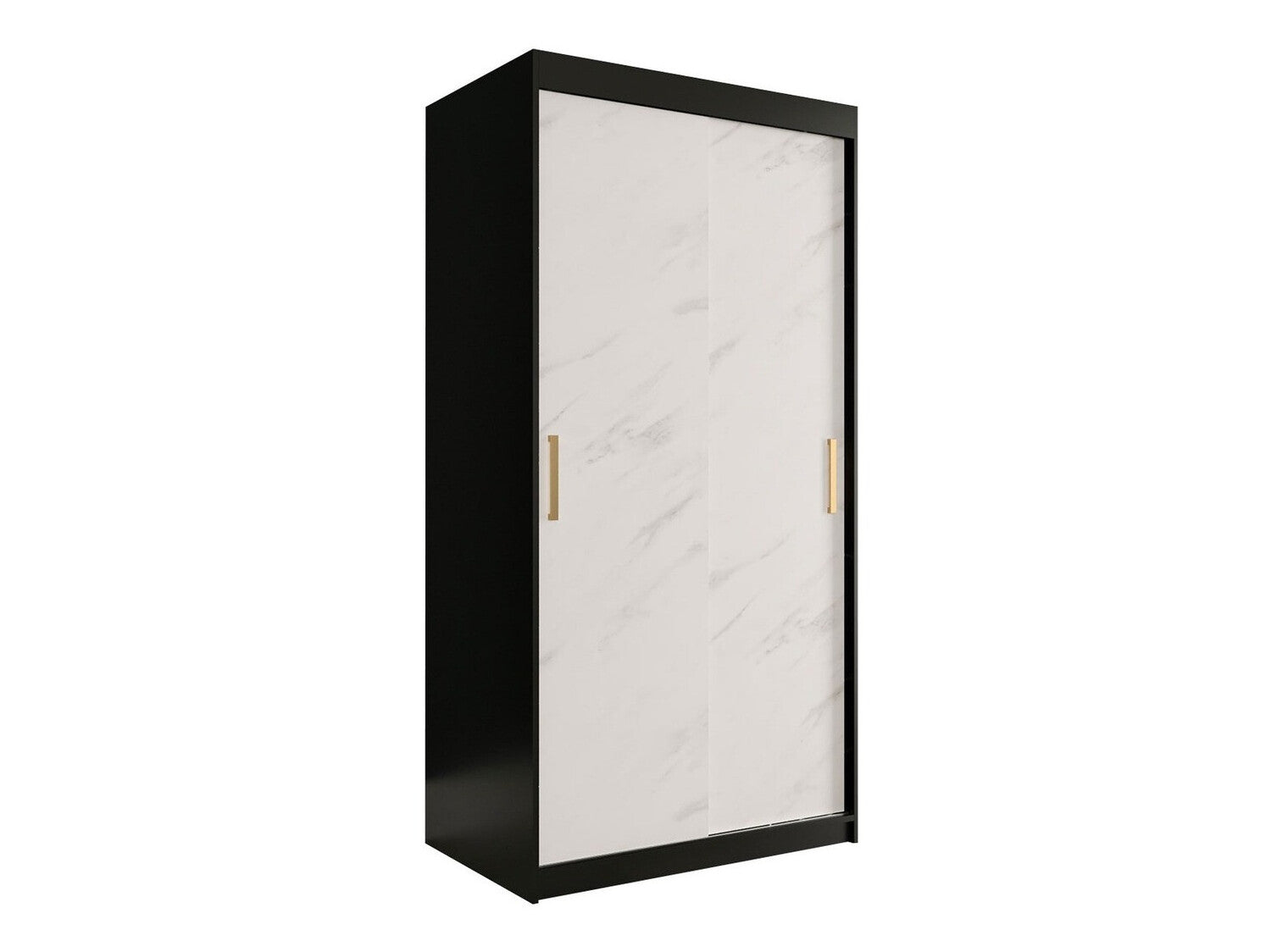 Gardróbszekrény 100 MARMUR T (Nemnnus T 100), Szín: Matt fekete + Fehér márvány, Fiókok: Nem
