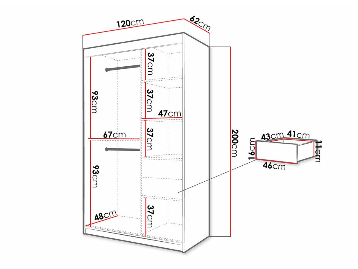 Gardróbszekrény 120 Jodełka 2 (Ratintu), Szín: Artisan tölgy + Fekete, Fiókok: Igen