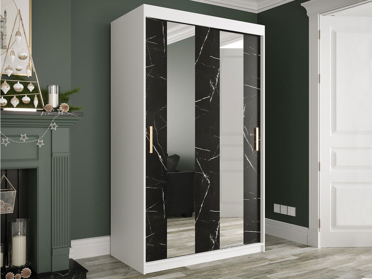 Gardróbszekrény 120 MARMUR POLE (Nemnnus 120), Szín: Matt fehér + Fekete márvány, Fiókok: Nem