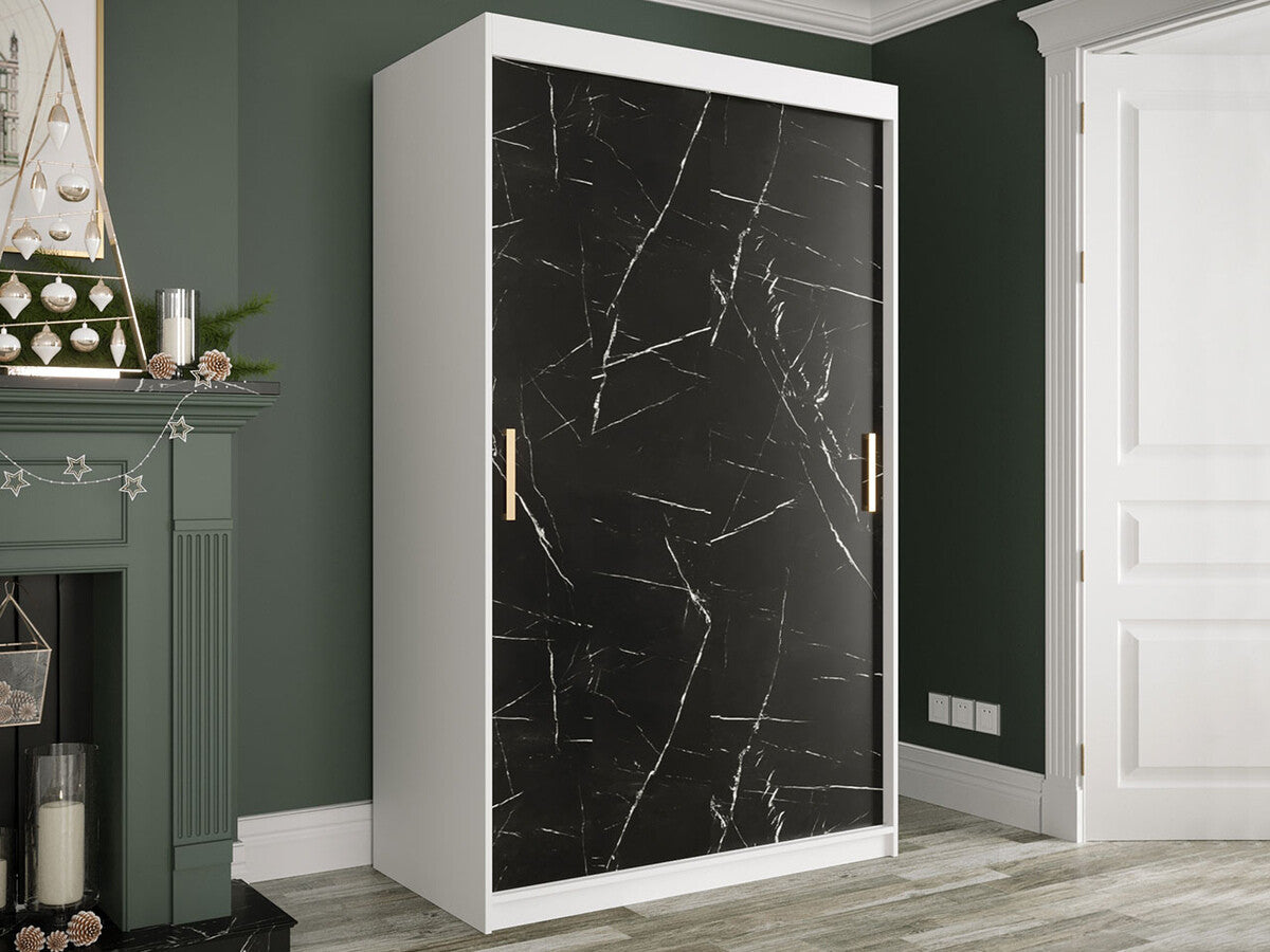 Gardróbszekrény 120 MARMUR T (Nemnnus T 120), Szín: Matt fehér + Fekete márvány, Fiókok: Igen