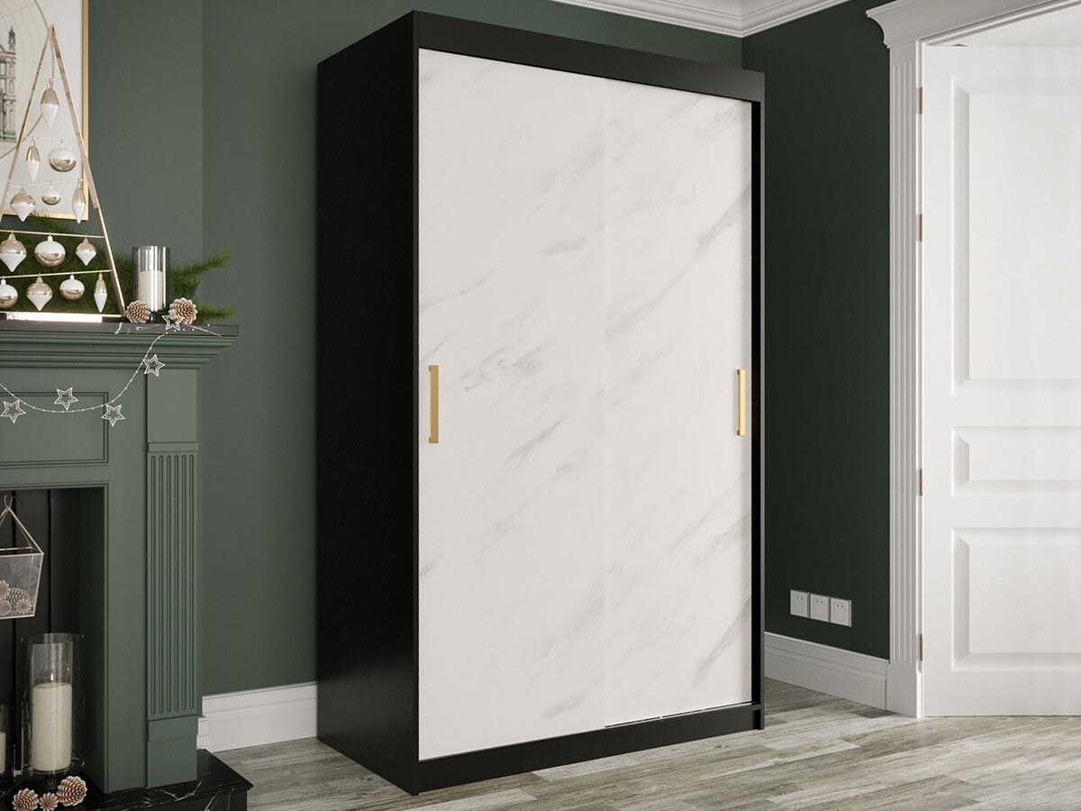 Gardróbszekrény 120 MARMUR T (Nemnnus T 120), Szín: Matt fekete + Fehér márvány, Fiókok: Igen