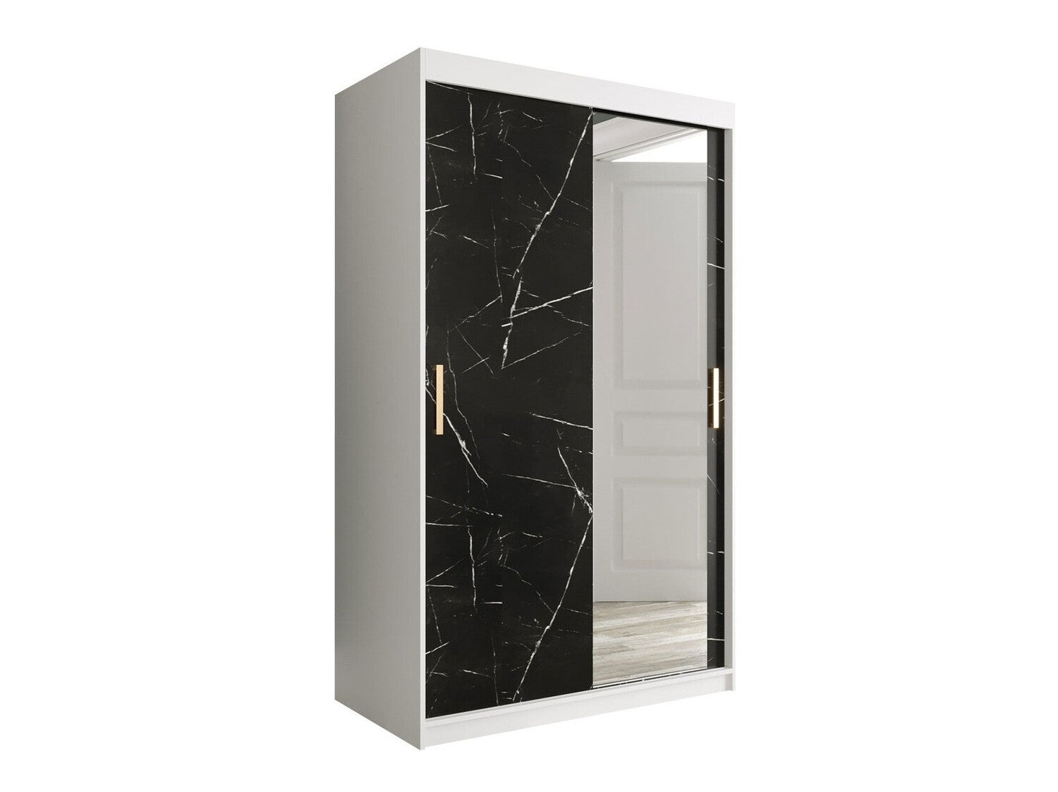 Gardróbszekrény 120 MARMUR T2 (Nemnnus T2 120), Szín: Matt fehér + Fekete márvány, Fiókok: Nem