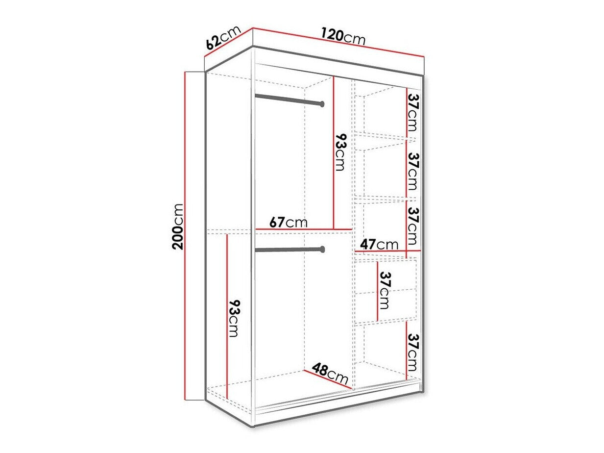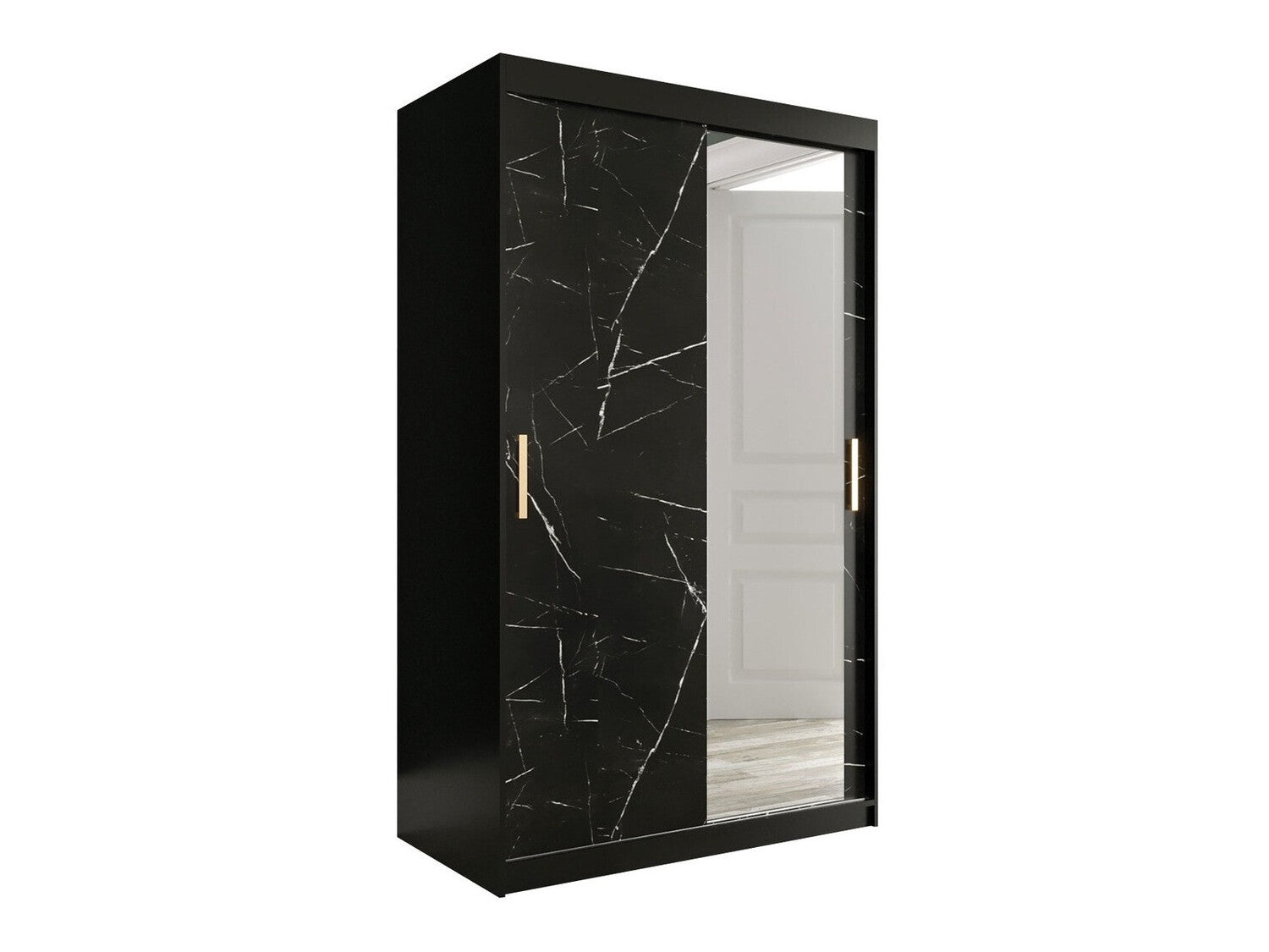 Gardróbszekrény 120 MARMUR T2 (Nemnnus T2 120), Szín: Matt fekete + Fekete márvány, Fiókok: Nem