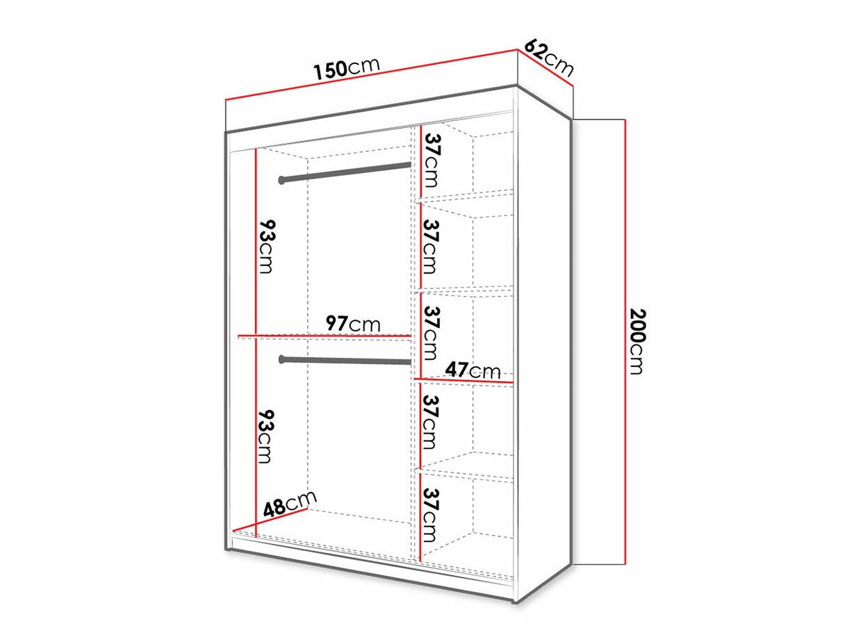 Gardróbszekrény 150 Jodełka 2 (Ratintu), Szín: Fehér + Fekete, Fiókok: Nem