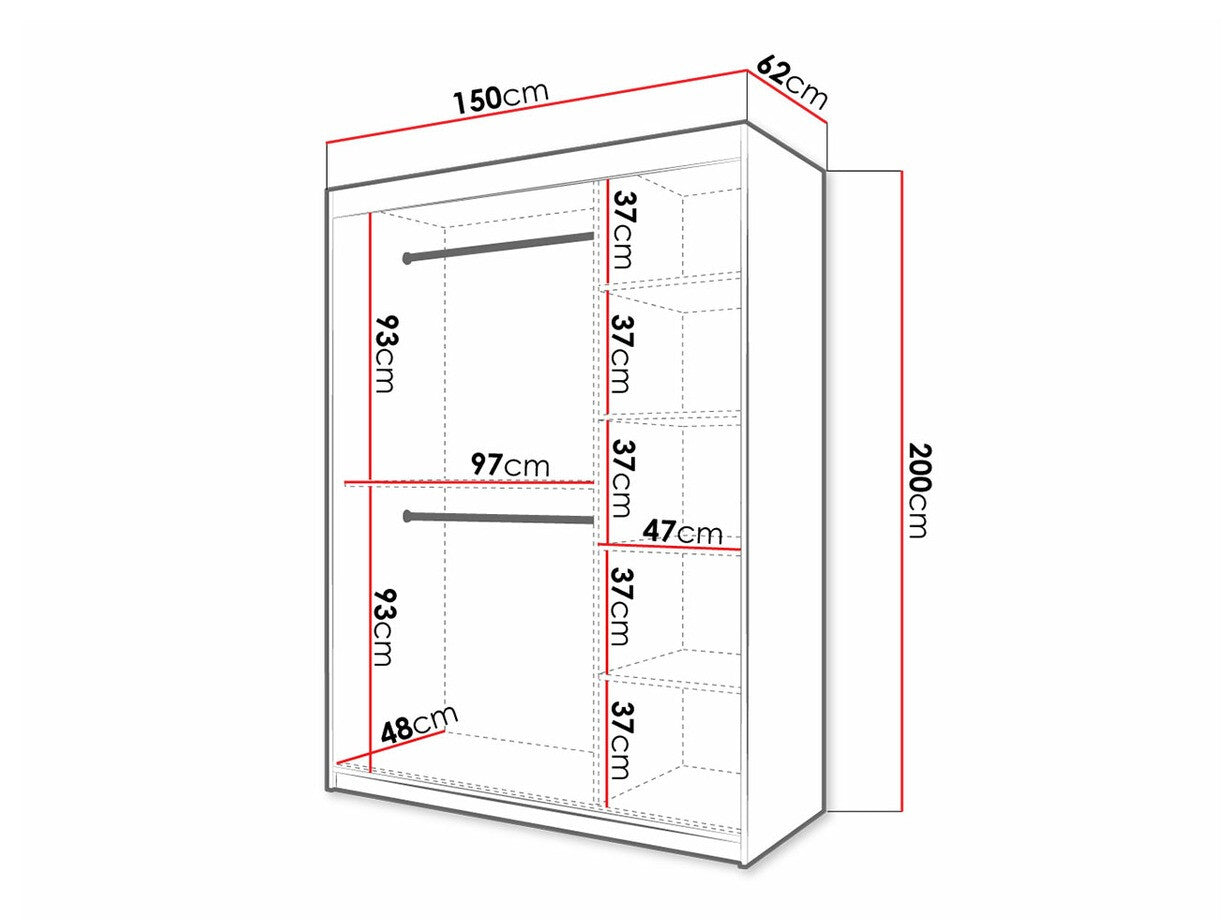 Gardróbszekrény 150 Jodełka 2 (Ratintu), Szín: Fekete + Artisan tölgy, Fiókok: Nem
