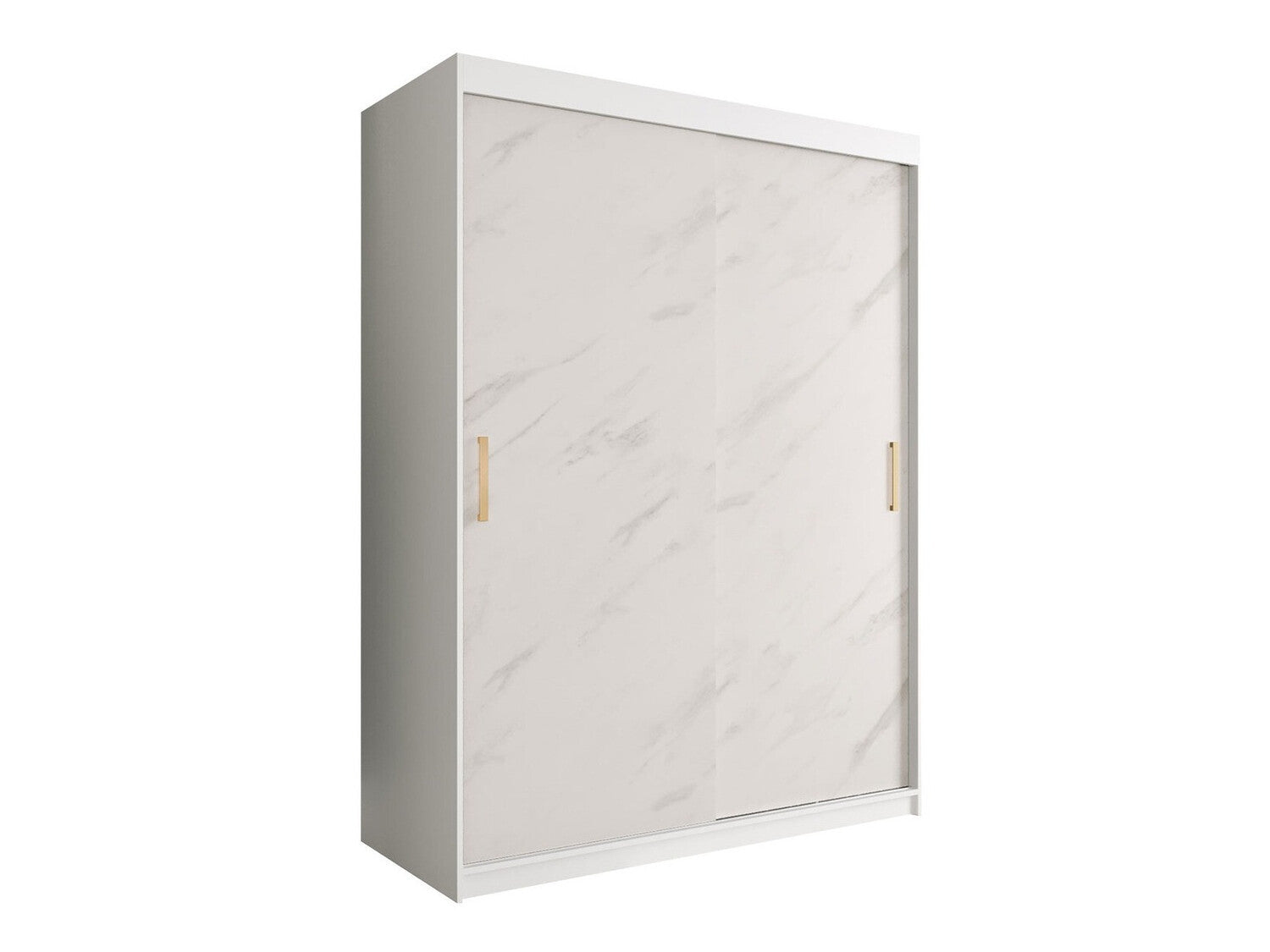 Gardróbszekrény 150 MARMUR T (Nemnnus T 150), Szín: Matt fehér + Fehér márvány, Fiókok: Igen