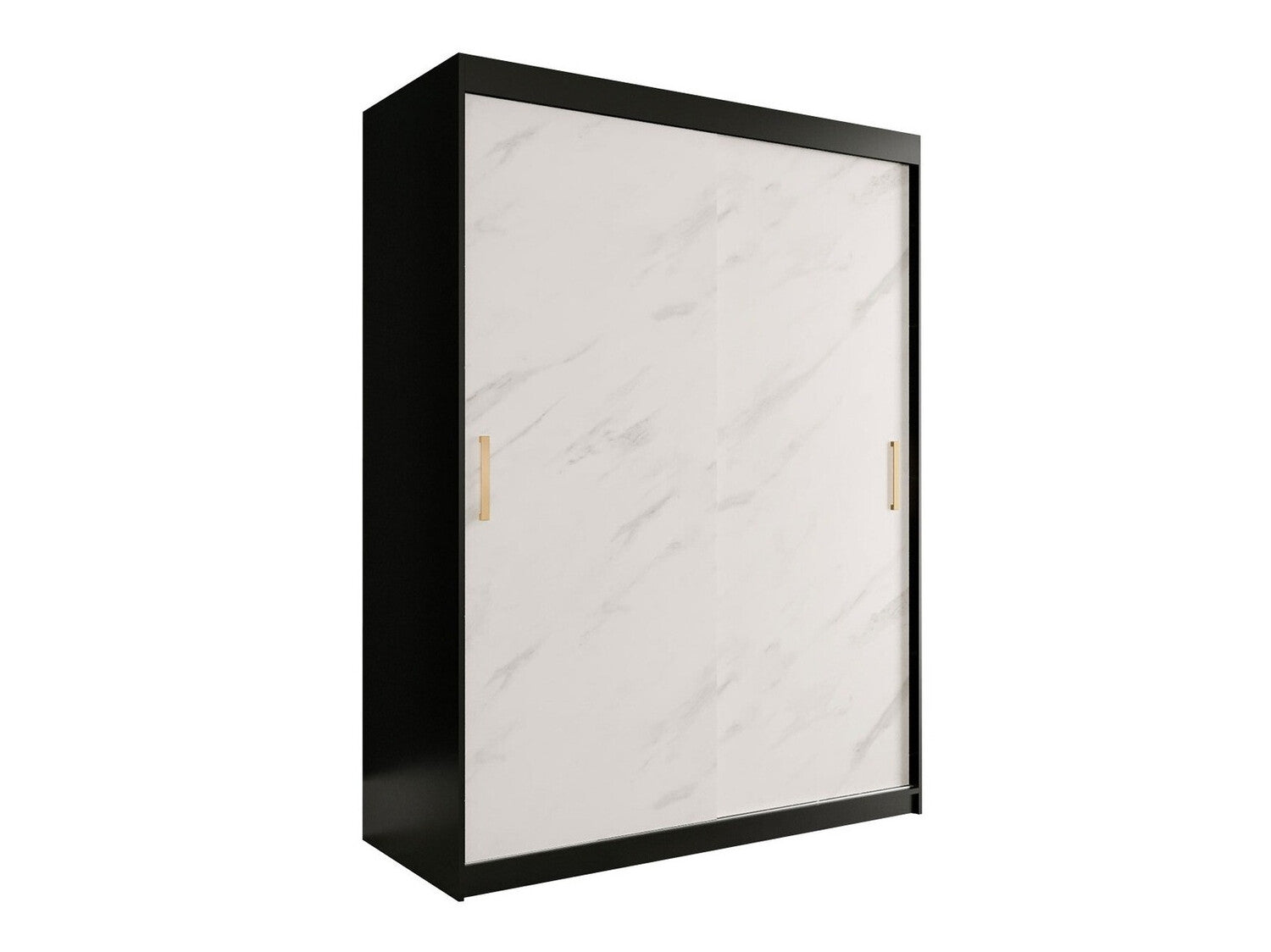 Gardróbszekrény 150 MARMUR T (Nemnnus T 150), Szín: Matt fekete + Fehér márvány, Fiókok: Nem