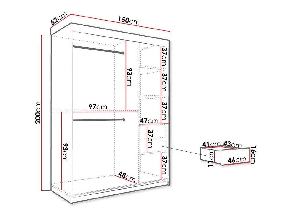 Gardróbszekrény 150 MARMUR T (Nemnnus T 150), Szín: Matt fekete + Fekete márvány, Fiókok: Igen