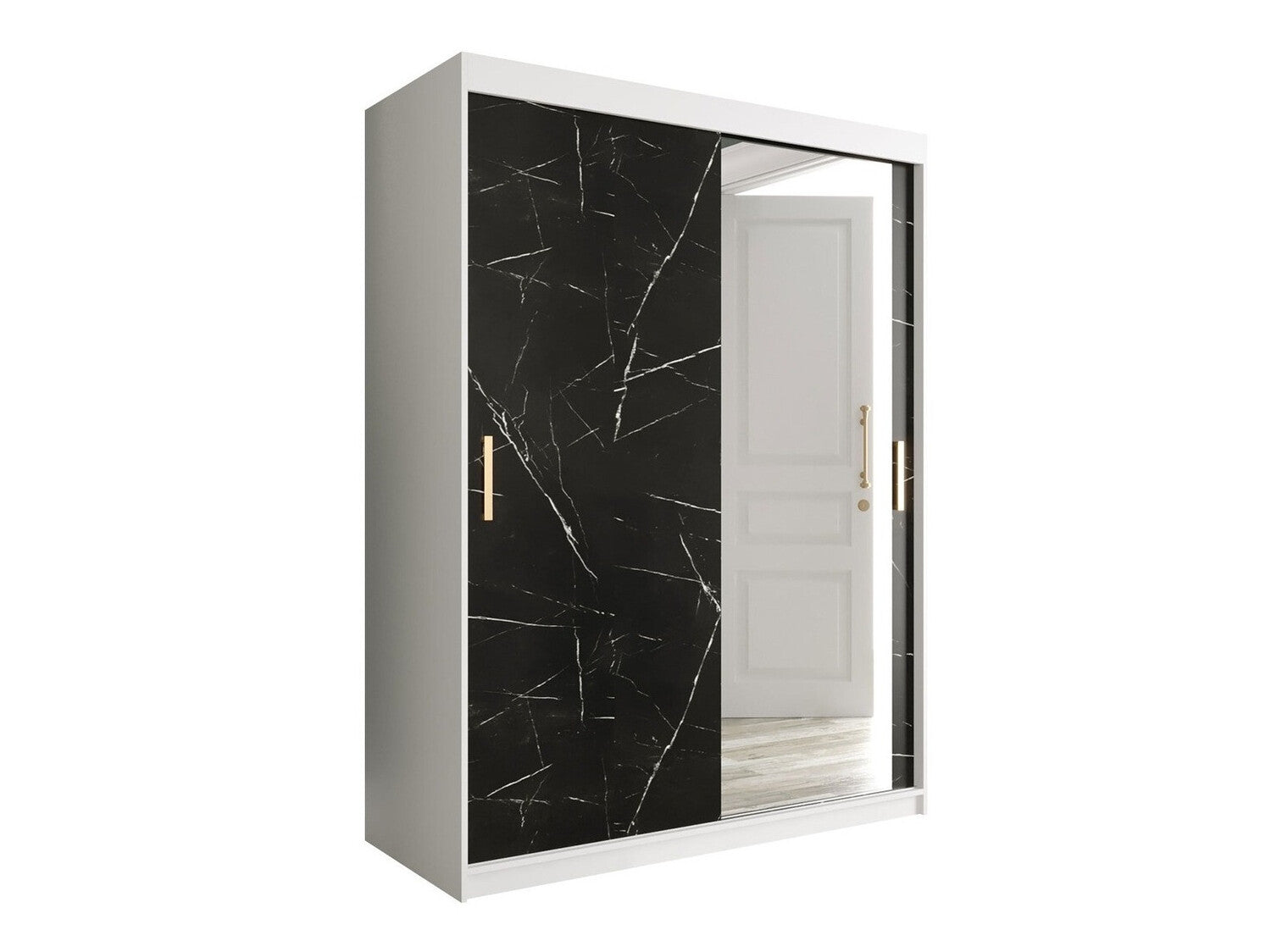 Gardróbszekrény 150 MARMUR T2 (Nemnnus T2 150), Szín: Matt fehér + Fekete márvány, Fiókok: Igen