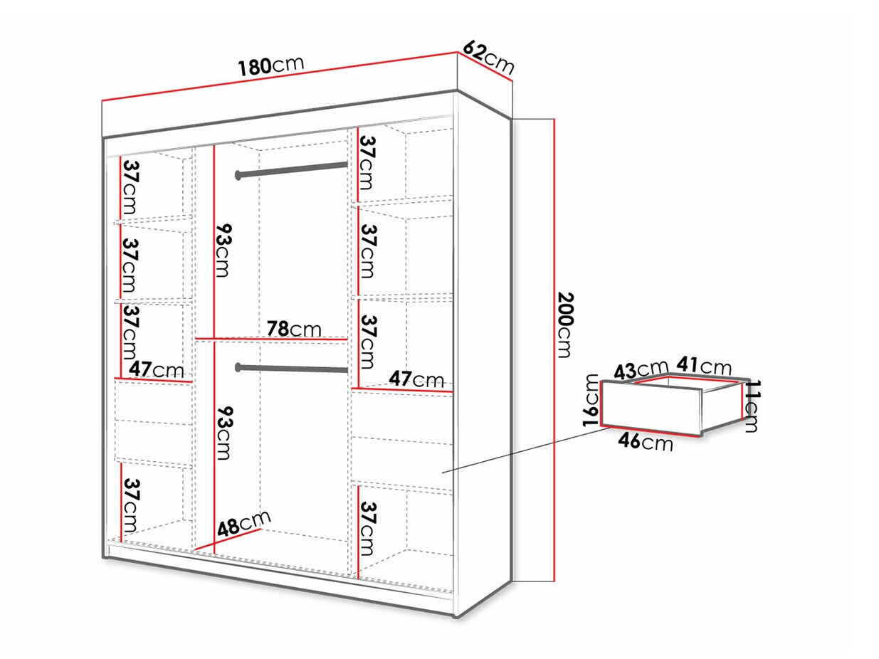 Gardróbszekrény 180 Jodełka 1 (Ratintu), Szín: Artisan tölgy + Fekete, Fiókok: Igen