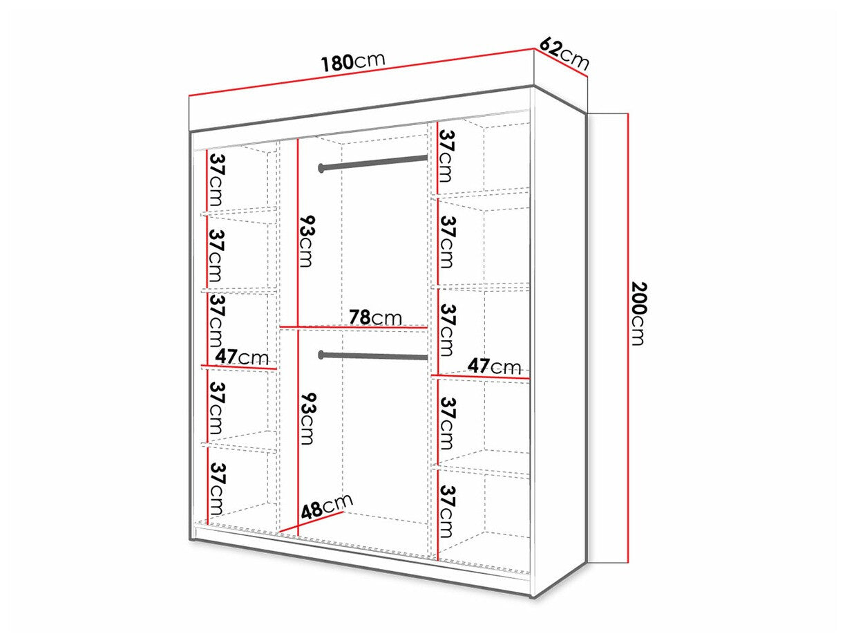 Gardróbszekrény 180 Jodełka 1 (Ratintu), Szín: Artisan tölgy + Fekete, Fiókok: Nem