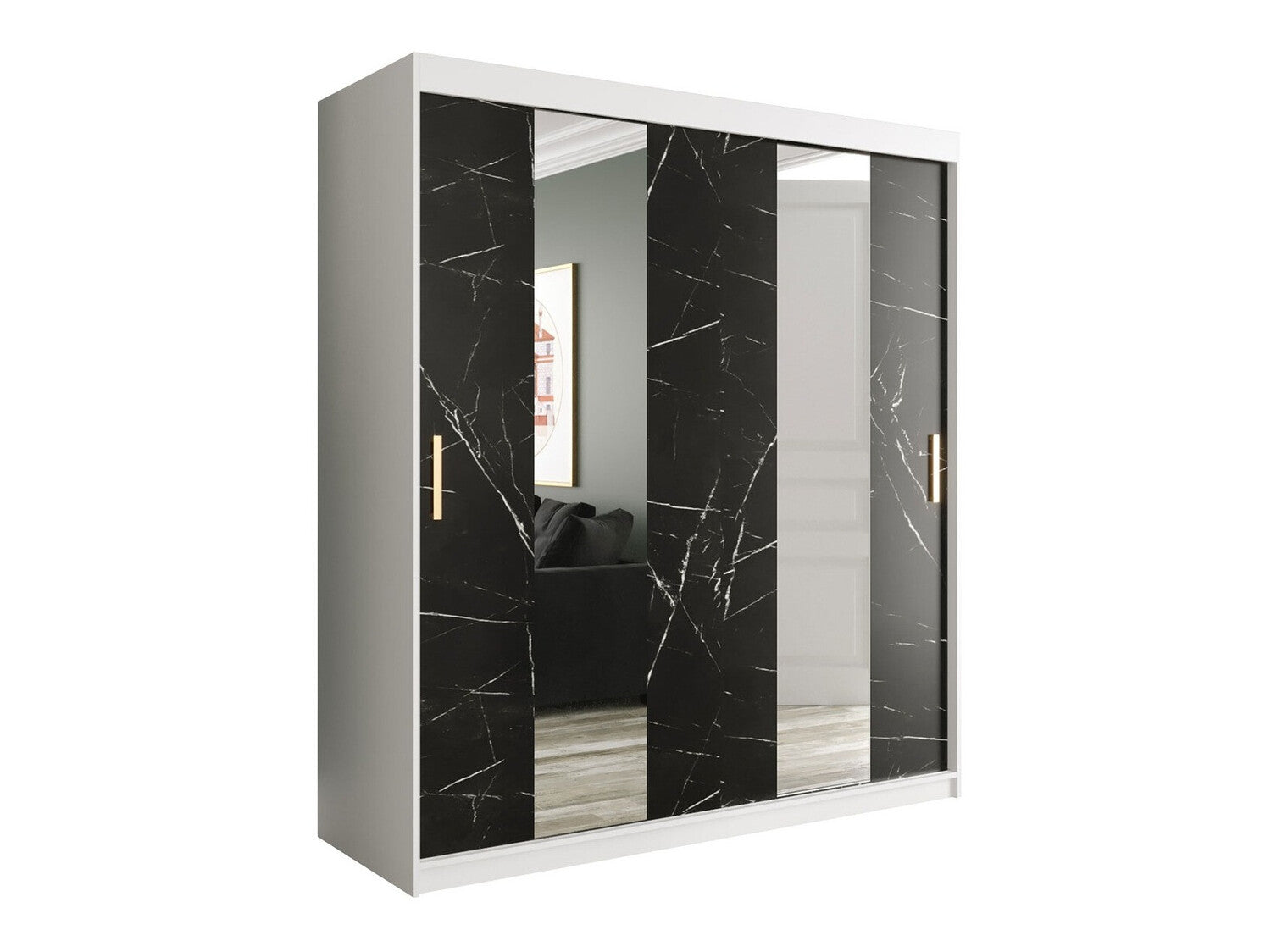 Gardróbszekrény 180 MARMUR POLE (Nemnnus 180), Szín: Matt fehér + Fekete márvány, Fiókok: Igen