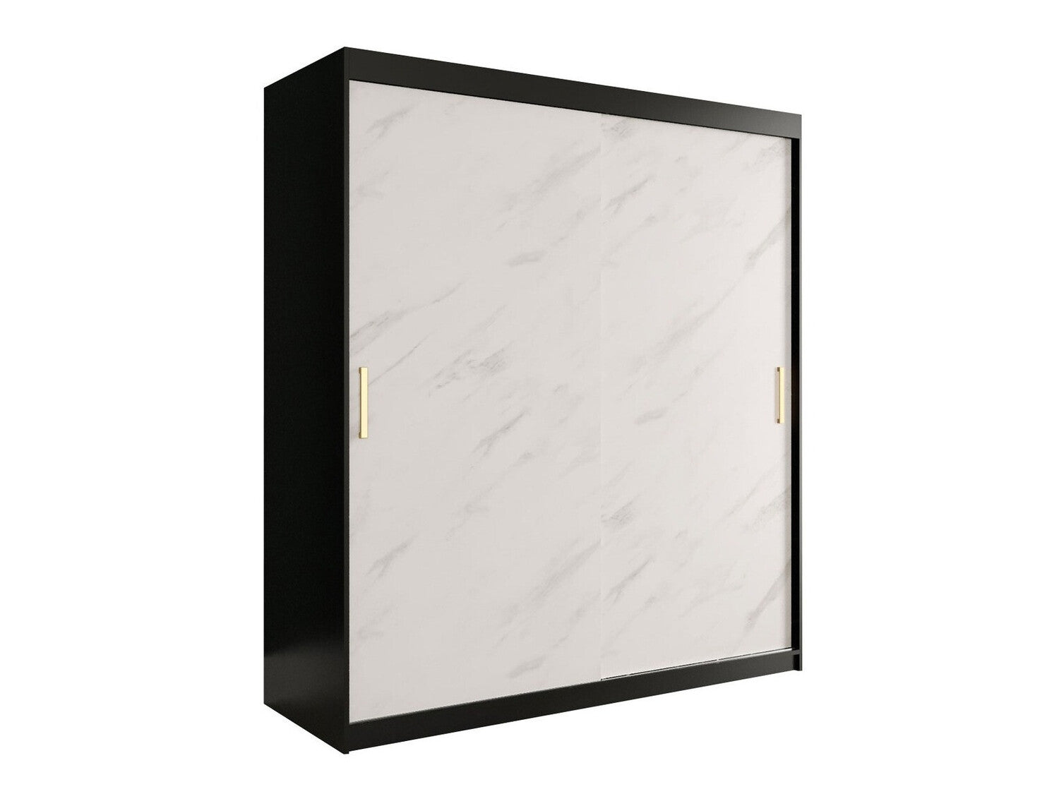 Gardróbszekrény 180 MARMUR T (Nemnnus T 180), Szín: Matt fekete + Fehér márvány, Fiókok: Nem