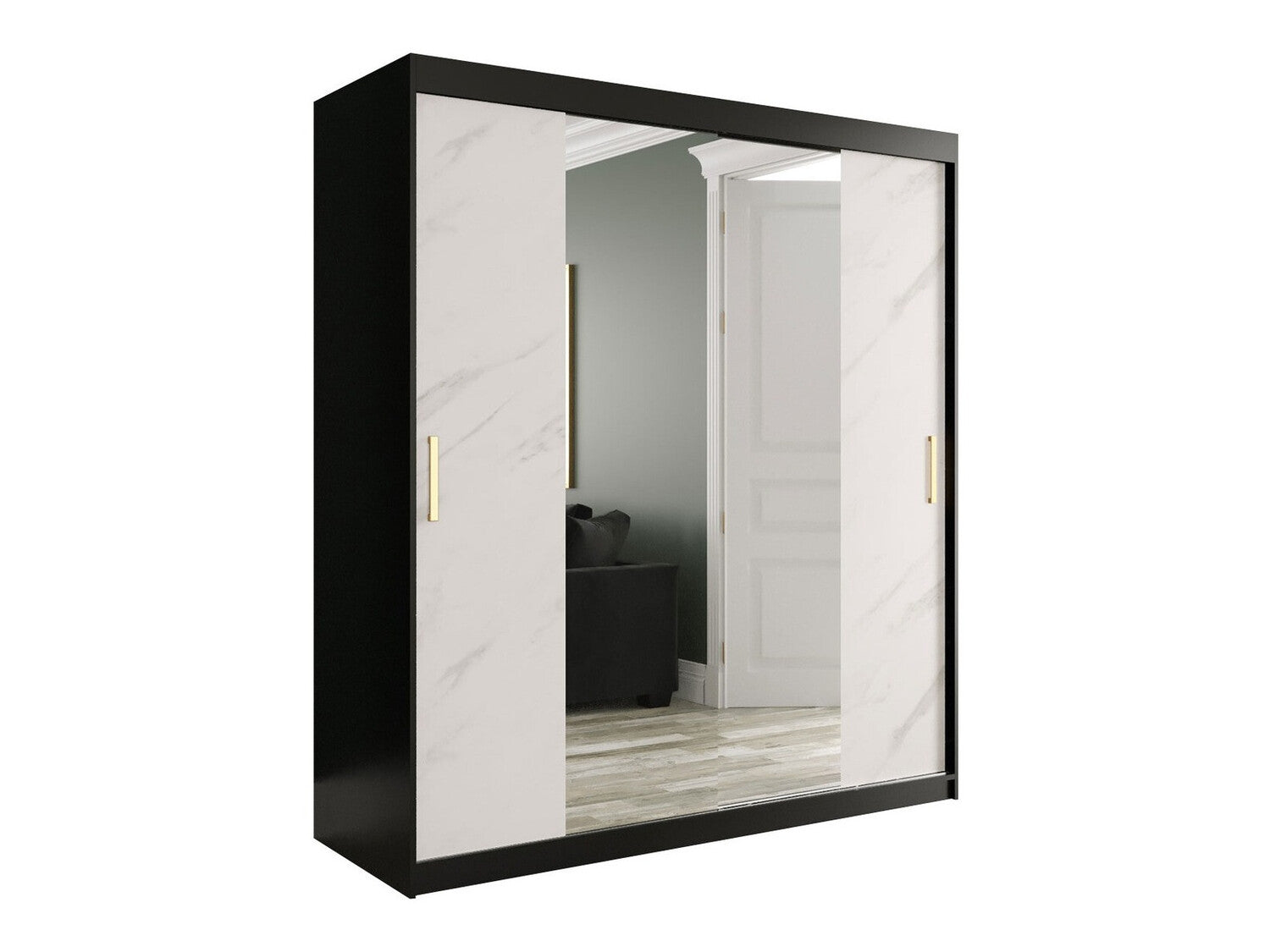 Gardróbszekrény 180 MARMUR T1 (Nemnnus T1 180), Szín: Matt fekete + Fehér márvány, Fiókok: Nem
