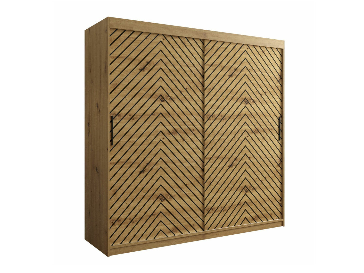 Gardróbszekrény 200 Jodełka 1 (Ratintu), Szín: Artisan tölgy + Fekete, Fiókok: Igen