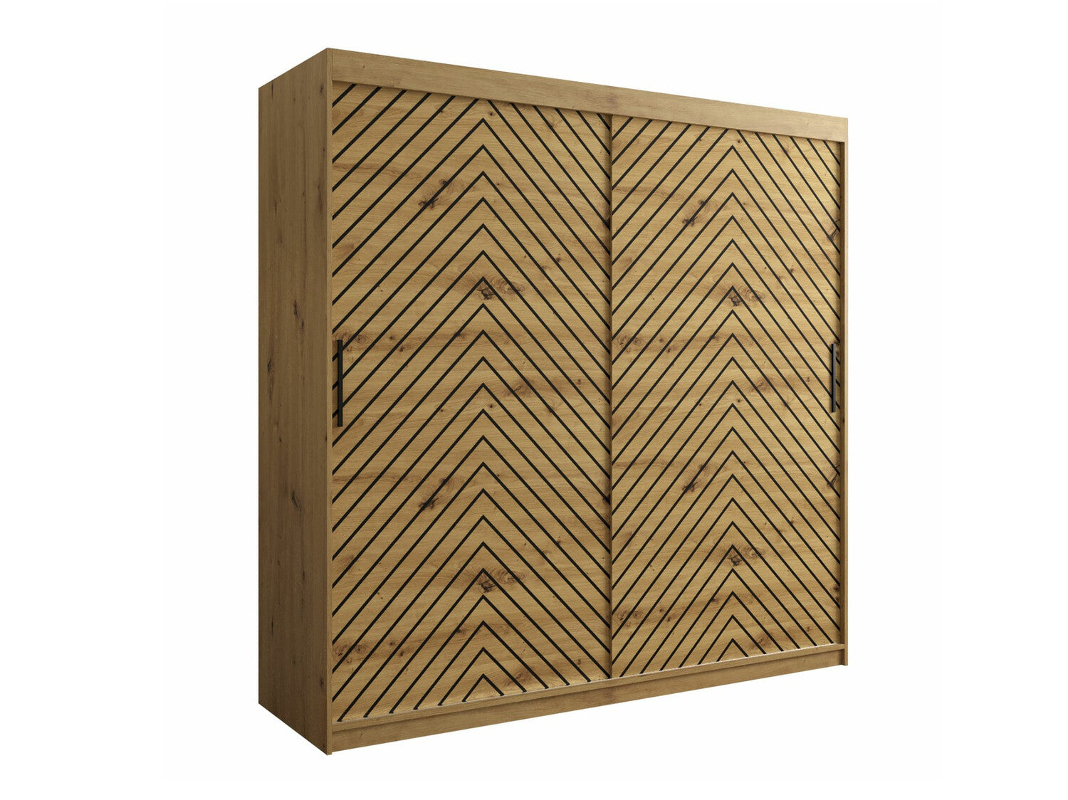 Gardróbszekrény 200 Jodełka 1 (Ratintu), Szín: Artisan tölgy + Fekete, Fiókok: Nem