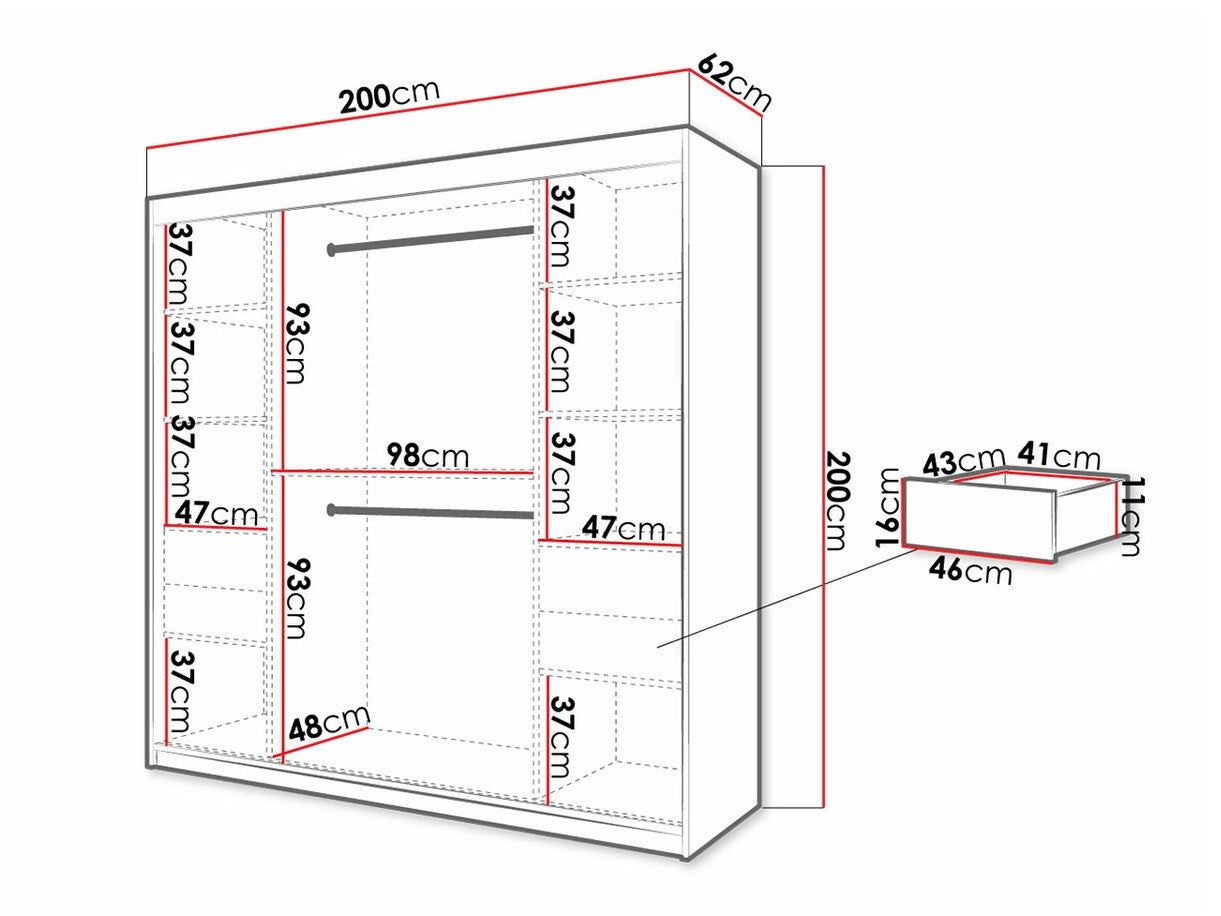 Gardróbszekrény 200 Jodełka 2 (Ratintu), Szín: Artisan tölgy + Fekete, Fiókok: Igen