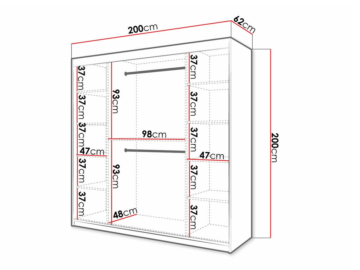 Gardróbszekrény 200 Jodełka 2 (Ratintu), Szín: Fekete + Artisan tölgy, Fiókok: Nem