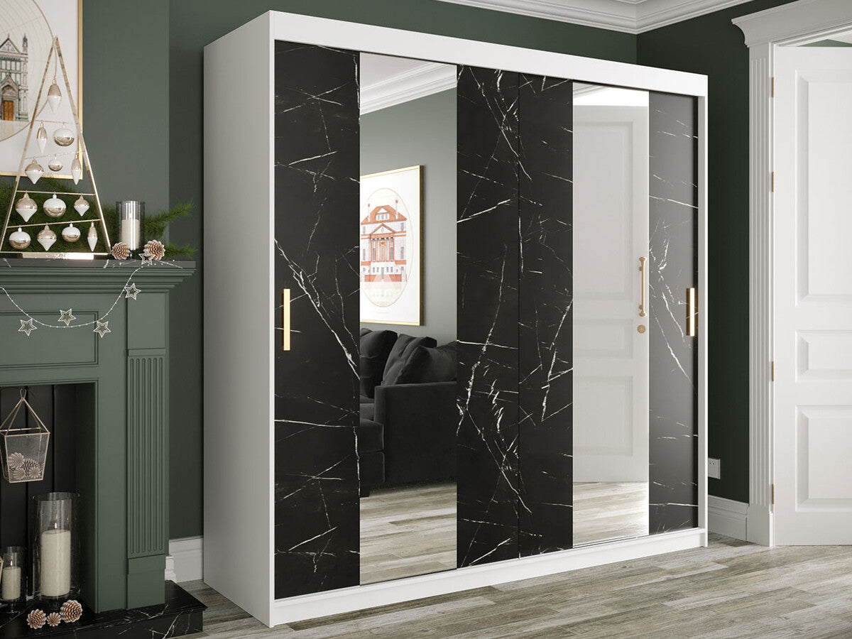 Gardróbszekrény 200 MARMUR POLE (Nemnnus 200), Szín: Matt fehér + Fekete márvány, Fiókok: Nem