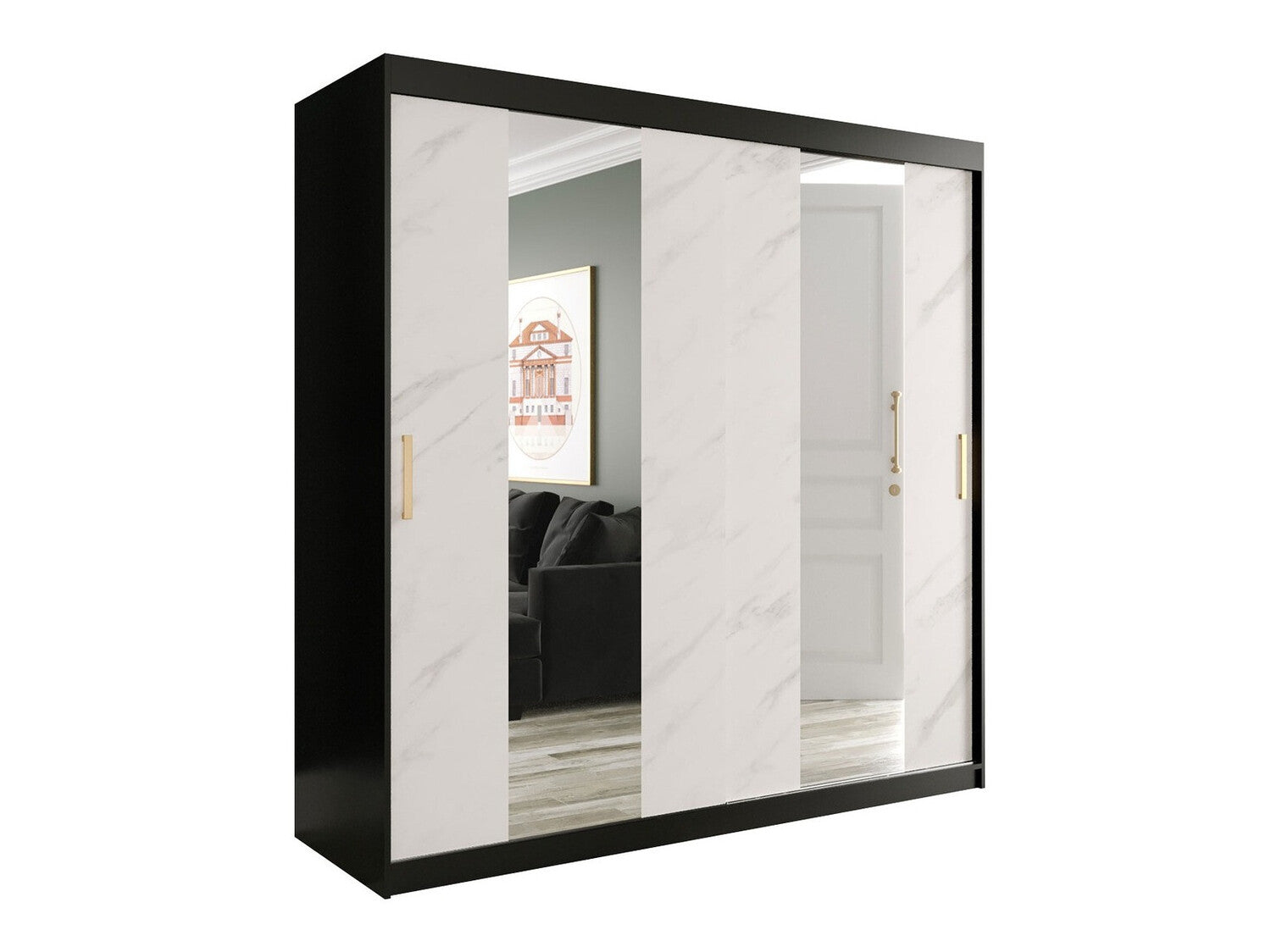 Gardróbszekrény 200 MARMUR POLE (Nemnnus 200), Szín: Matt fekete + Fehér márvány, Fiókok: Igen