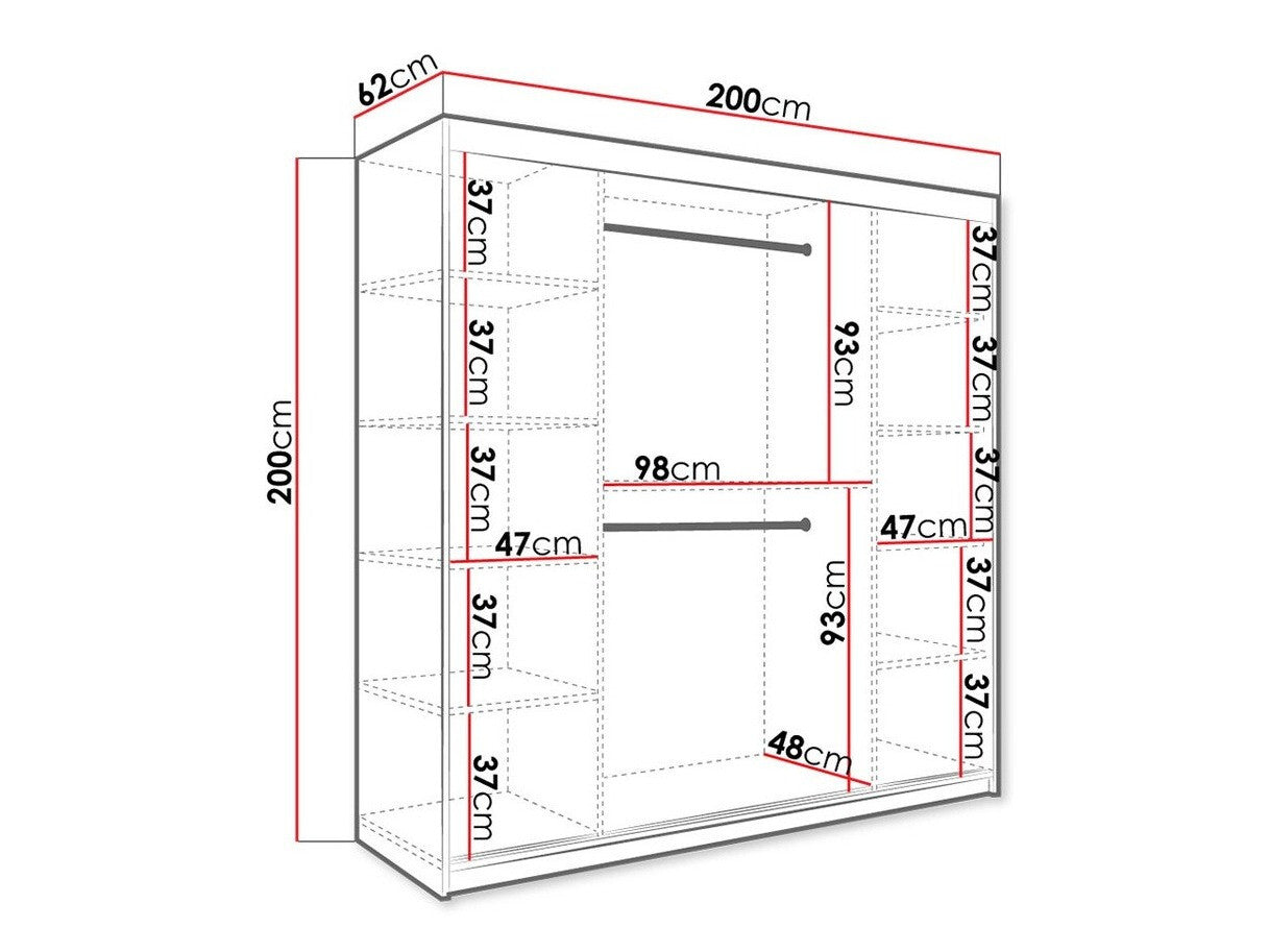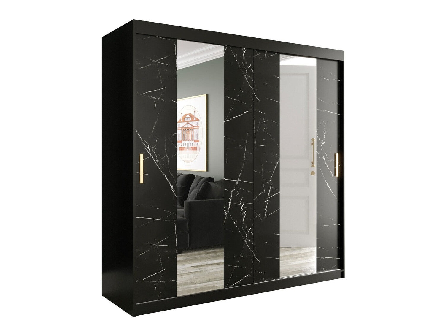 Gardróbszekrény 200 MARMUR POLE (Nemnnus 200), Szín: Matt fekete + Fekete márvány, Fiókok: Nem