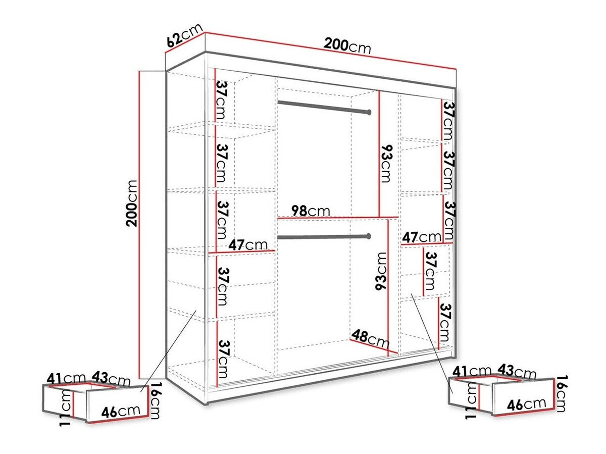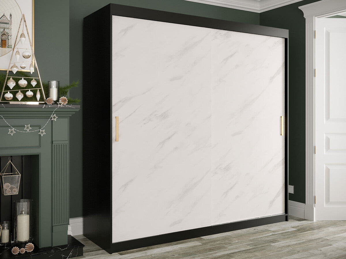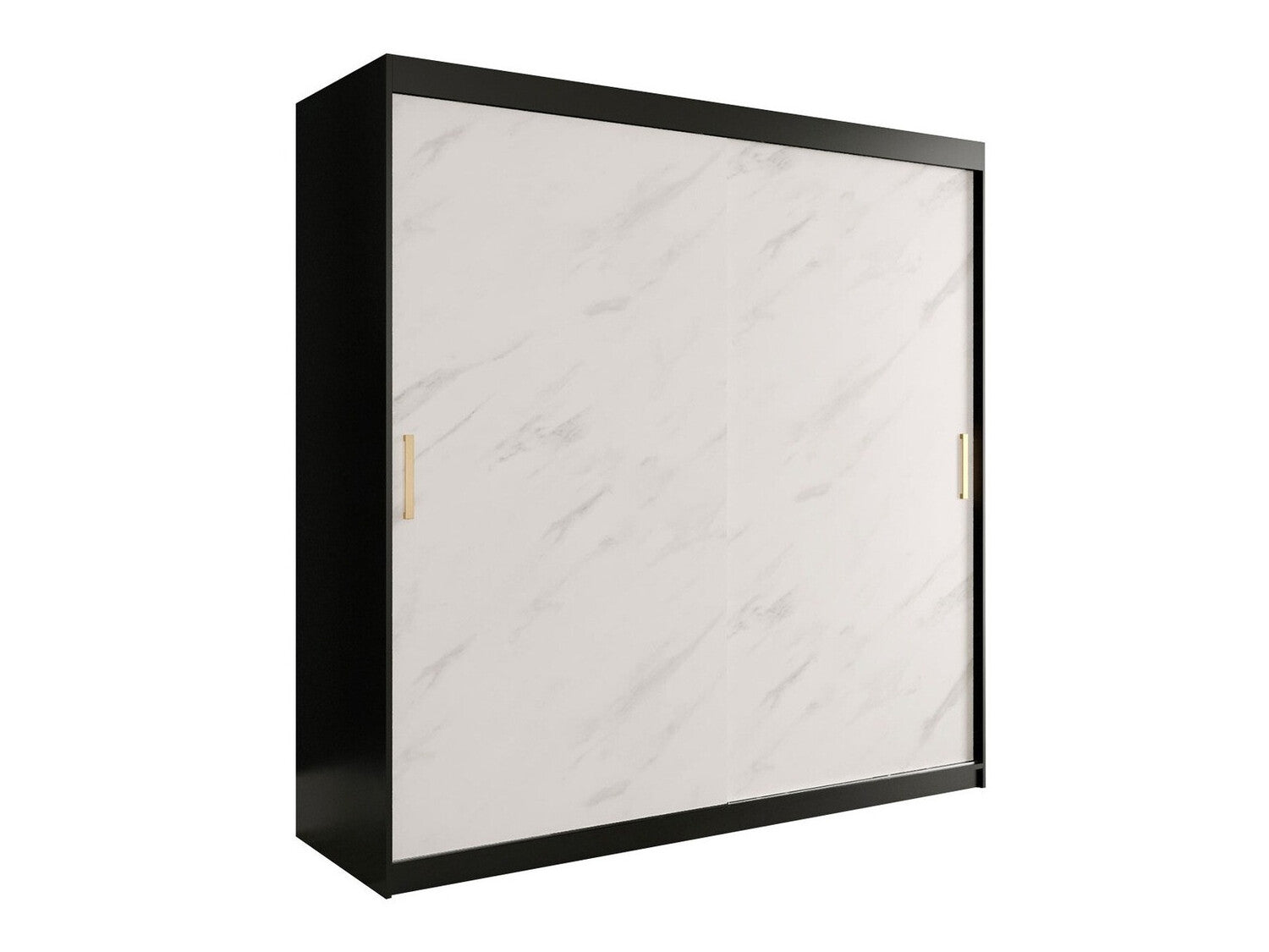 Gardróbszekrény 200 MARMUR T (Nemnnus T 200), Szín: Matt fekete + Fehér márvány, Fiókok: Igen
