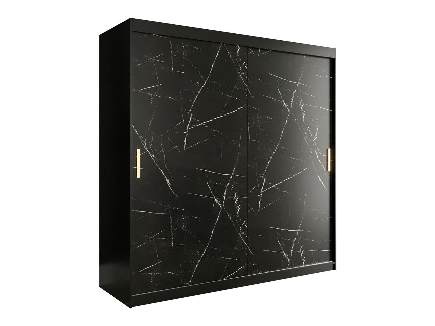 Gardróbszekrény 200 MARMUR T (Nemnnus T 200), Szín: Matt fekete + Fekete márvány, Fiókok: Nem
