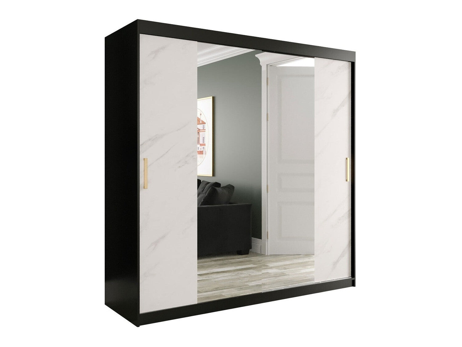Gardróbszekrény 200 MARMUR T1 (Nemnnus T1 200), Szín: Matt fekete + Fehér márvány, Fiókok: Igen