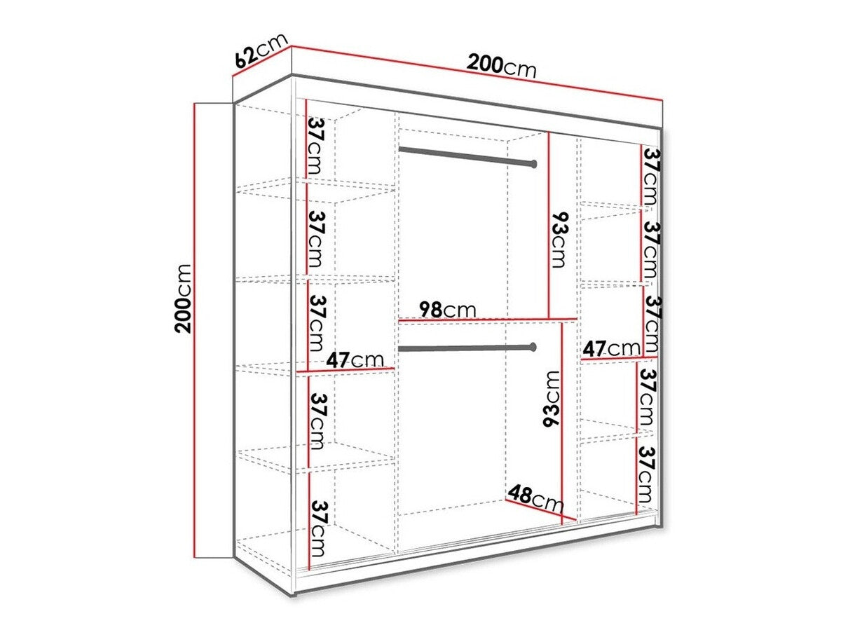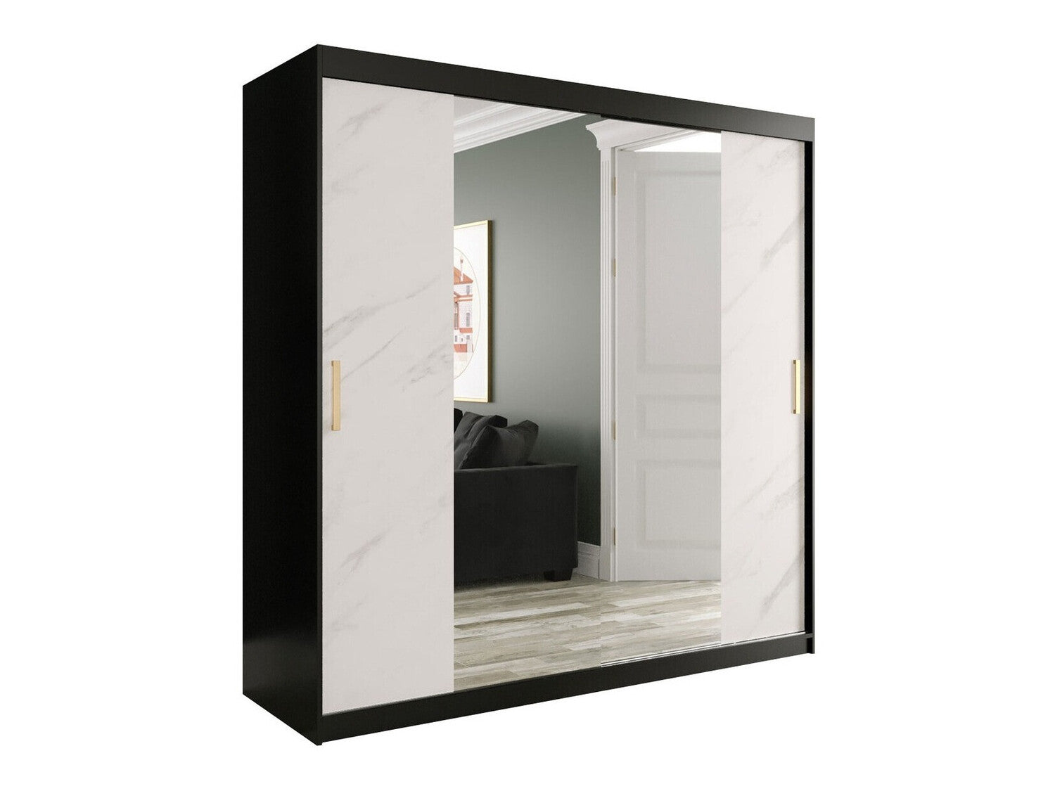 Gardróbszekrény 200 MARMUR T1 (Nemnnus T1 200), Szín: Matt fekete + Fehér márvány, Fiókok: Nem
