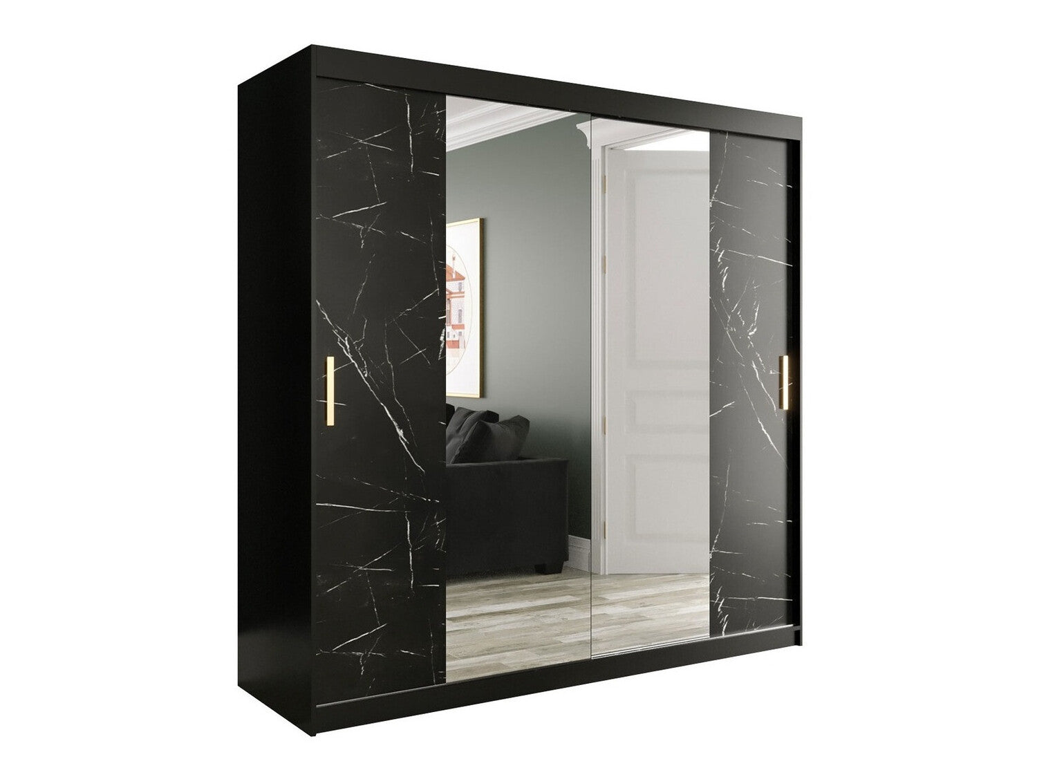 Gardróbszekrény 200 MARMUR T1 (Nemnnus T1 200), Szín: Matt fekete + Fekete márvány, Fiókok: Nem