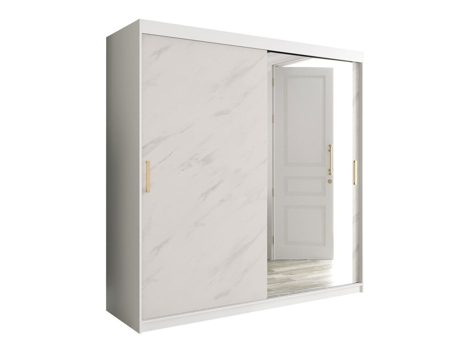 Gardróbszekrény 200 MARMUR T2 (Nemnnus T2 200), Szín: Matt fehér + Fehér márvány, Fiókok: Nem